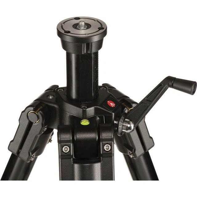 The Manfrotto 161MK2B Super Professional Tripod Mk2 is one of the tallest in the Manfrotto line of tripods, and is capable of supporting cameras up to 44 lb, at a height of 105.1". It is the ideal large format tripod for home and studio use. The 161MK2's center column is geared for easy, accurate adjustment. This tripod can easily handle an 8x10 view camera even at full height and precarious angles. The built-in mid-level spreader adds anti-torsional rigidity and stops the tripod legs from accidentally being knocked wider apart. Compared to a ground-level spreader or dolly, the mid-level spreader has the advantage that it stays well out of the mud and dirt and is more suitable for use on uneven terrain. The geared center column allows for safe and precise height adjustments. The three set screws in the camera platform can be used to permanently secure the head to the tripod, providing additional security.