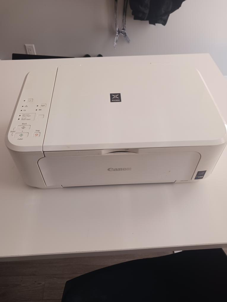 Canon MG3520 printer in white Wireless Does 8.5"×11" And 4"×6" photo paper Pickup Taylorwood and Simcoe St N Oshawa. Near Durham college!