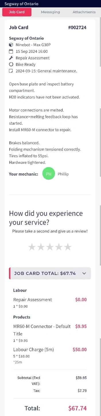 It has been taken to the Segway Ontario for inspection and the problemic original part that comes with the scooter has been replaced with an upgraded part. Also, the bottom plastic was upgraded with a steel plate. The scooter has 700km on it.