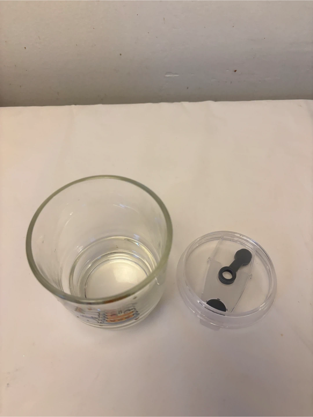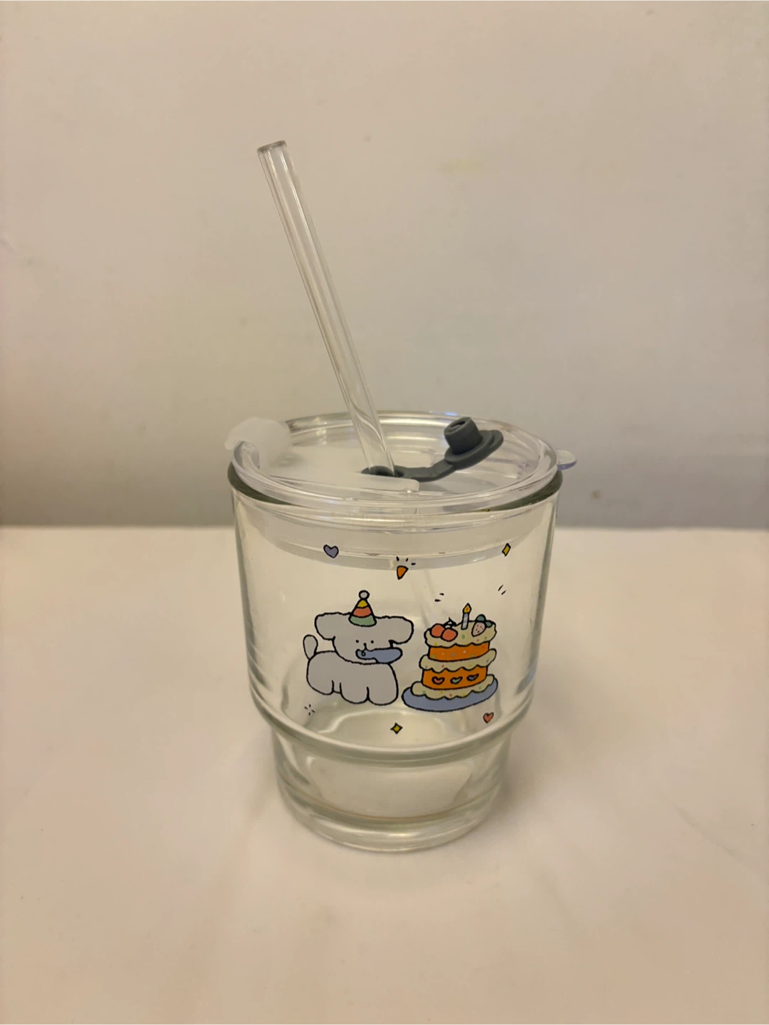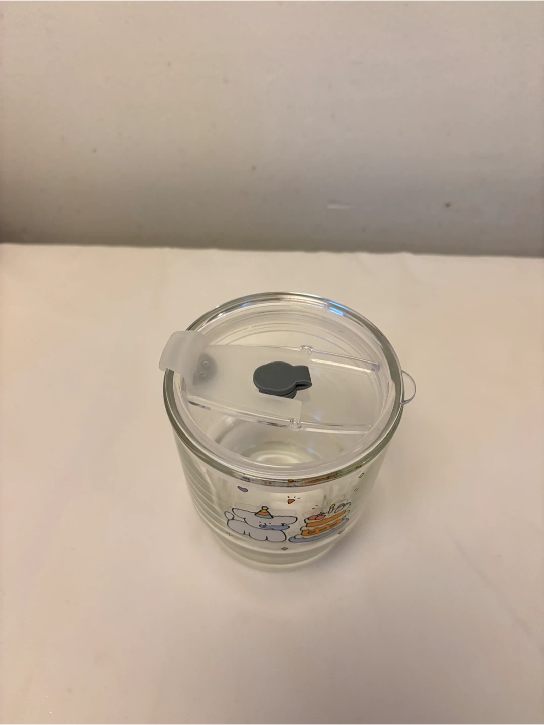 I'm selling a cute glass cup. It comes with a lid and straw; the lid is brand new. The glass cup and straw were used but have no signs of use.
