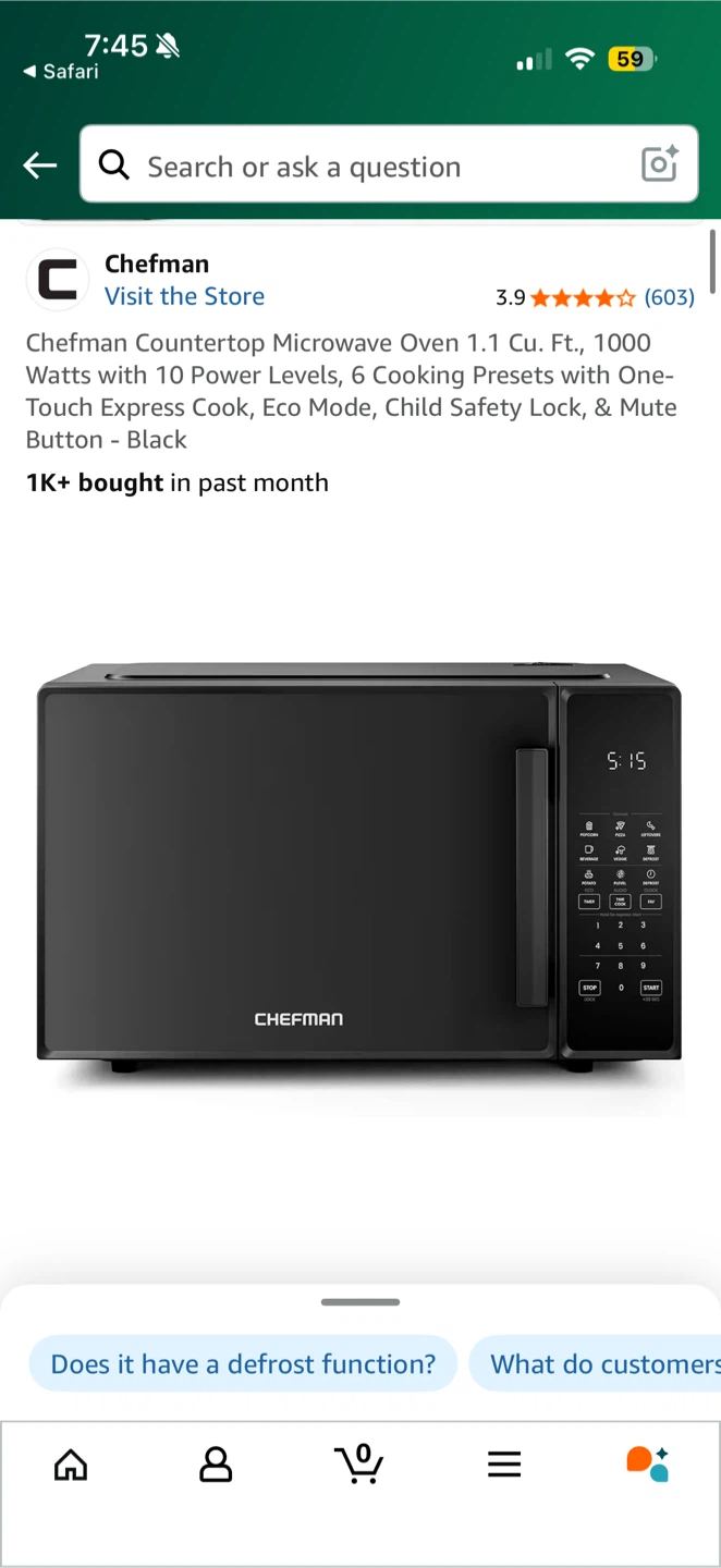 - Chefman 1.1 cu. ft. digital countertop microwave oven (black)