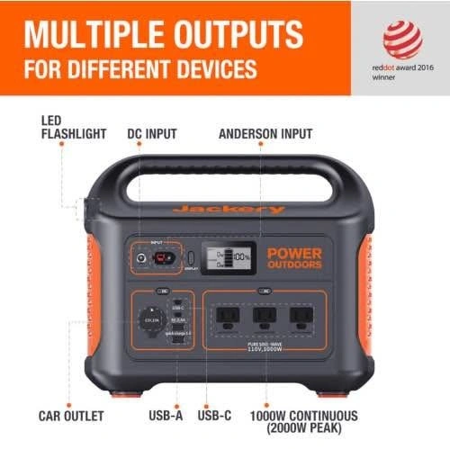 • Solar panels not included. Works with Jackery SolarSaga 100W panels via DC/Anderson input.