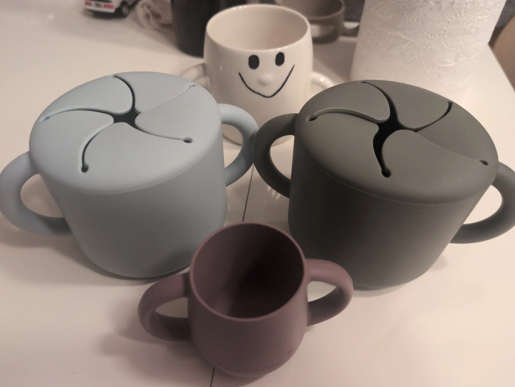 Selling a set of silicone snack cups in blue, grey and purple! These are great for little ones to snack on the go. Easy to hold and clean, they’re perfect for toddlers learning to feed themselves. The soft silicone makes them safe and durable for everyday use