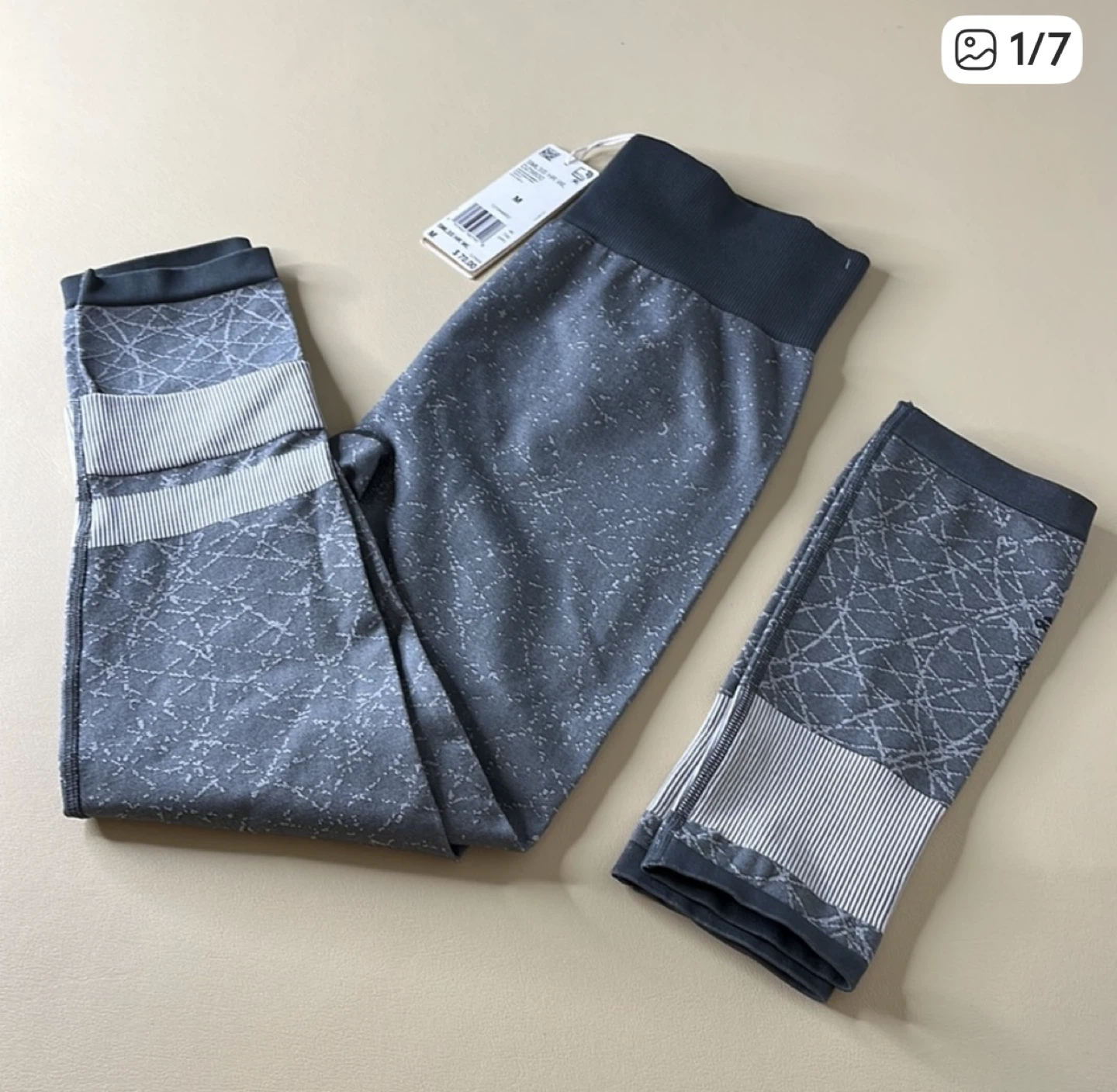 Selling a pair of Adidas Seamless HR tights in size M! They are a stylish gray color with a unique pattern. These tights originally retailed for $70.00.