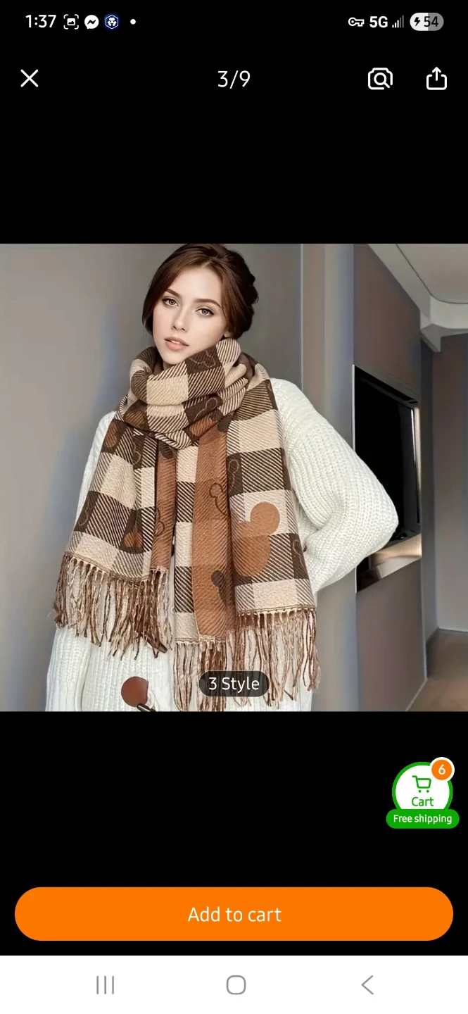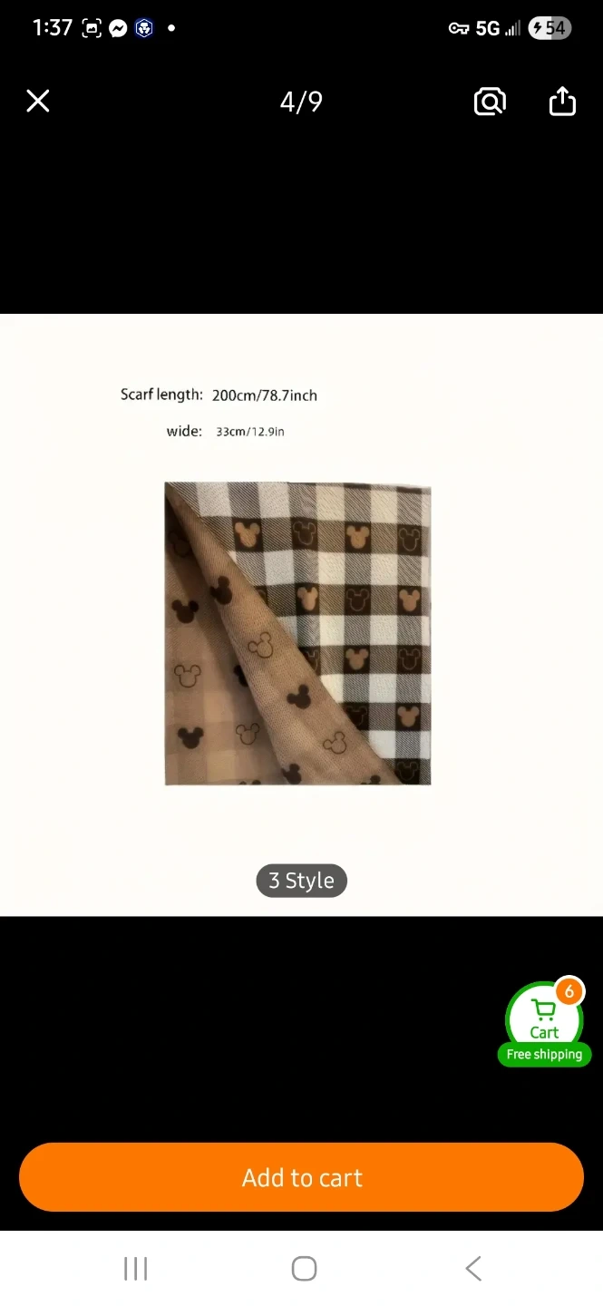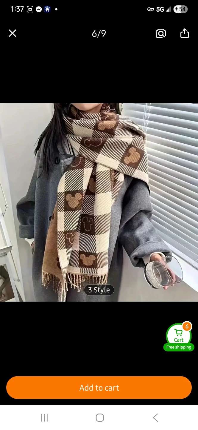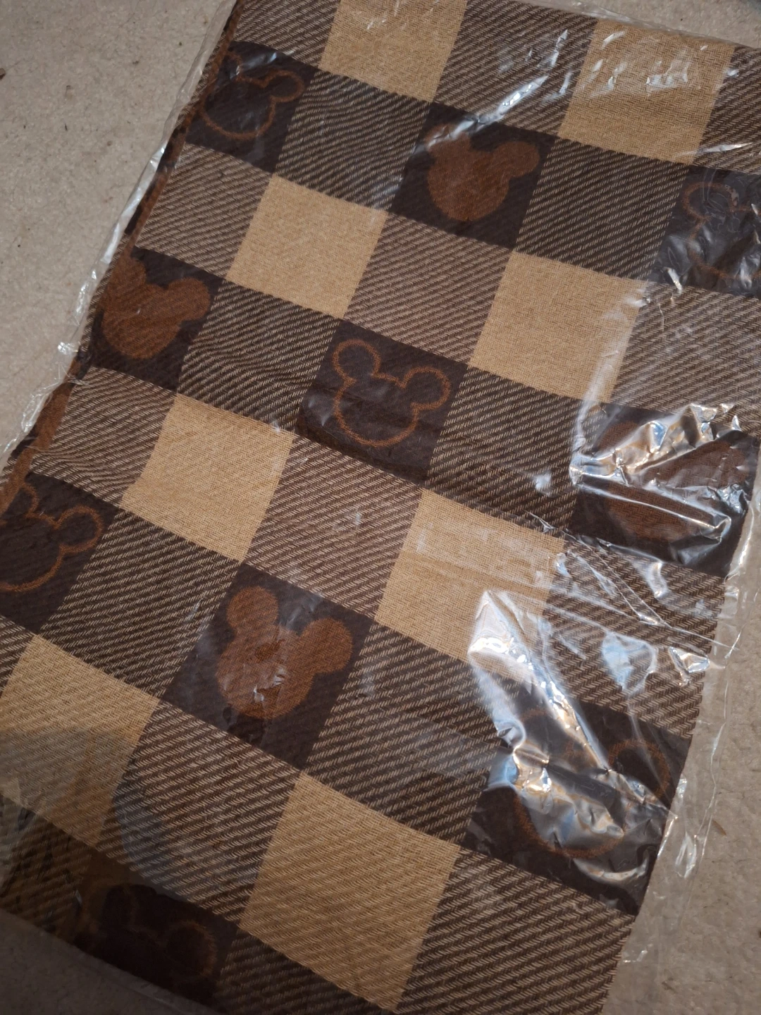 Keep cozy with this adorable Mickey Mouse plaid scarf! The scarf features a brown and beige checkered pattern with Mickey Mouse silhouettes. It's about 200cm/78.7 inches long and 33cm/12.9 inches wide, perfect for wrapping up on chilly days