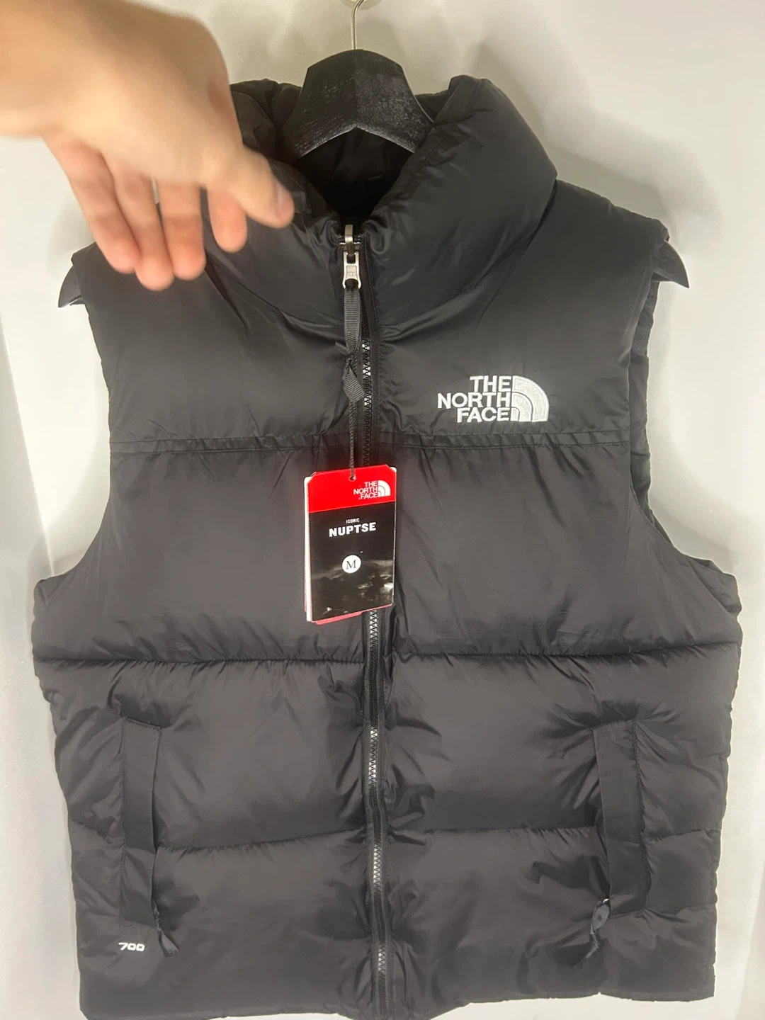 Selling a The North Face Nuptse Vest in size medium! It's a stylish and warm vest, perfect for layering during the colder months. It features the classic North Face logo and a 700 fill power, providing excellent insulation