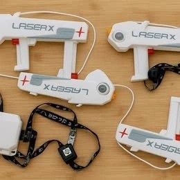 Selling a complete Laser X laser tag set with 4 blasters and 4 sensor vests. Everything works great and is ready for hours of fun. Perfect for kids, teens, or even adults who want a little friendly competition.