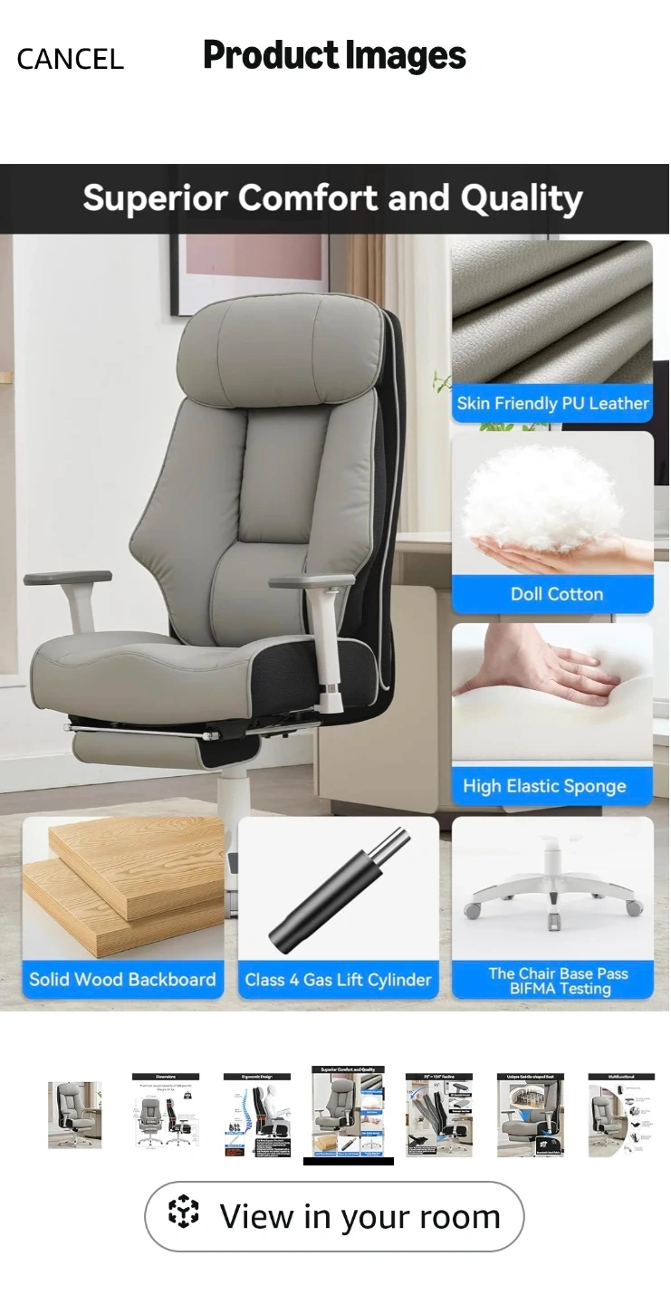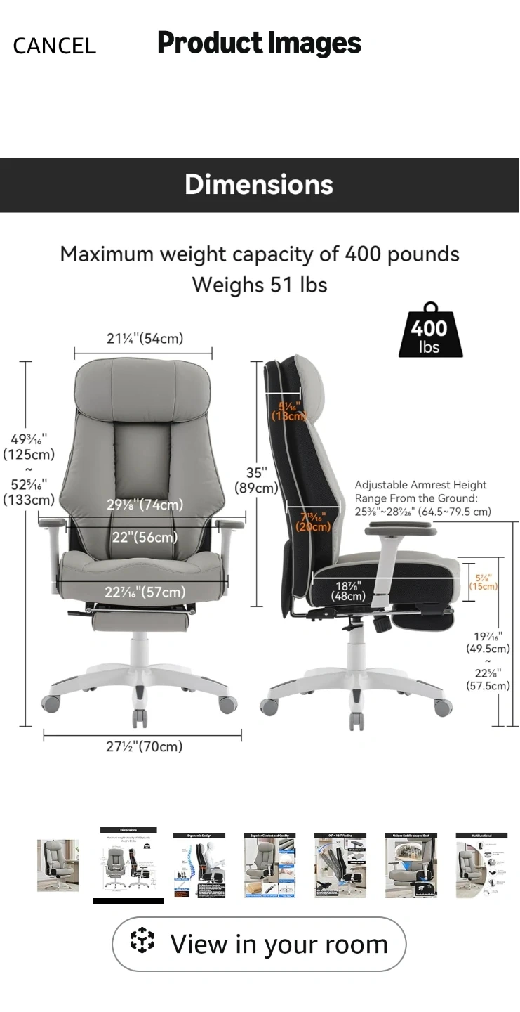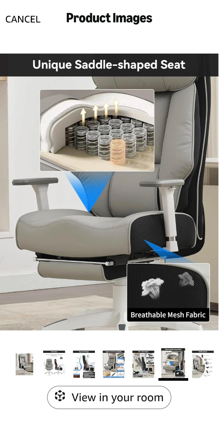 Looking to sell my DJ-Wang Big and Tall office chair in grey! It's designed to support up to 400 lbs. The chair features a unique saddle-shaped seat and breathable mesh fabric for extra comfort. It's made with skin-friendly PU leather, doll cotton, and high elastic sponge. It also has a solid wood backboard and a Class 4 gas lift cylinder. The chair base passed the BIFMA testing.