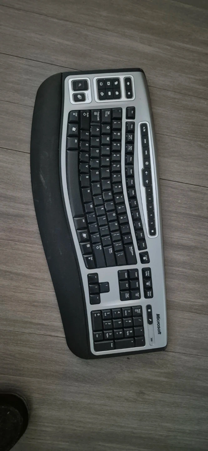 Selling a Microsoft Natural Ergonomic Keyboard 4000. It's in good condition and ready for a new user. This keyboard is designed for comfort and helps reduce strain while typing. Perfect for long work sessions!