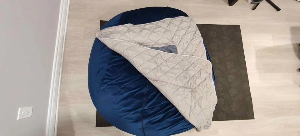 Large Navy Blue Bean Bag: Super soft velvet-style fabric, very comfortable and spacious.