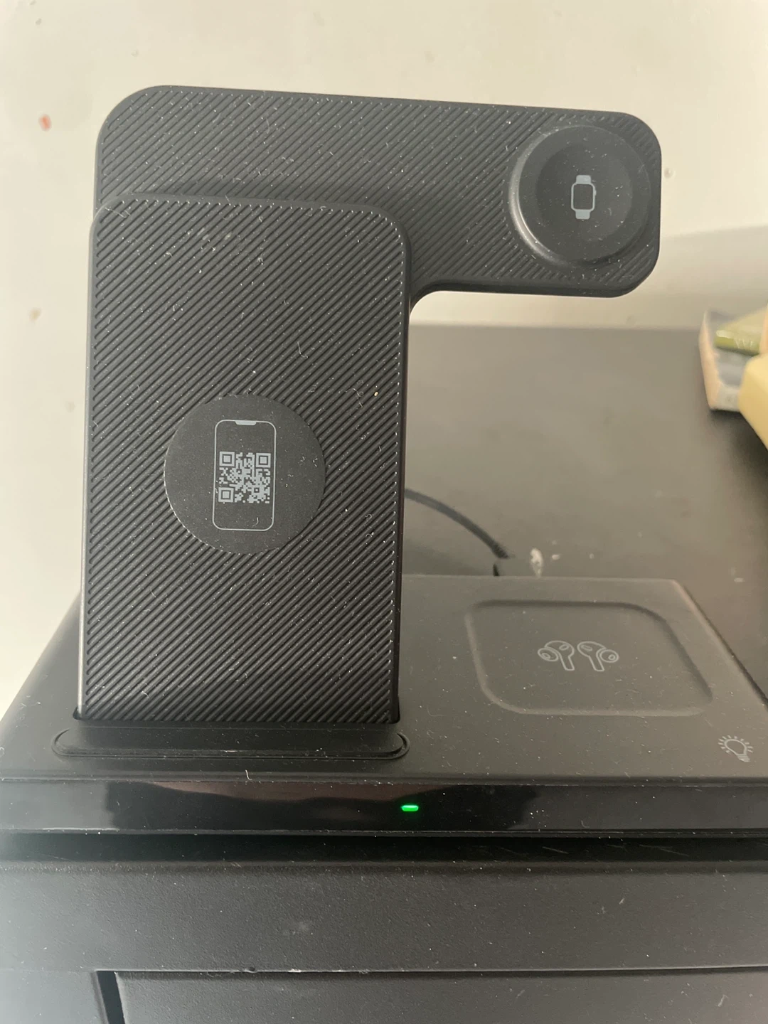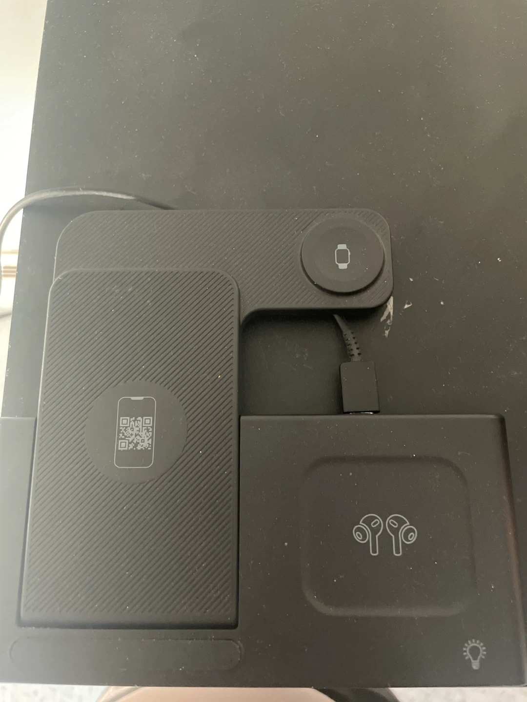 This is a 3 in 1 Wireless Charger Stand! It can charge your phone, watch, and earbuds at the same time. It's lightweight and portable, perfect for travel or everyday use