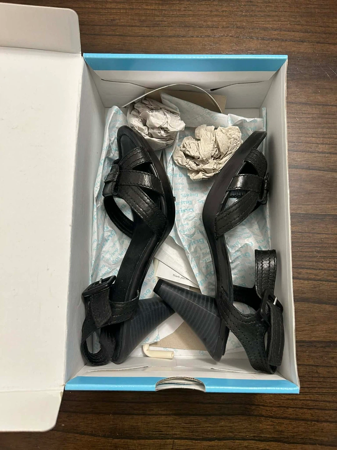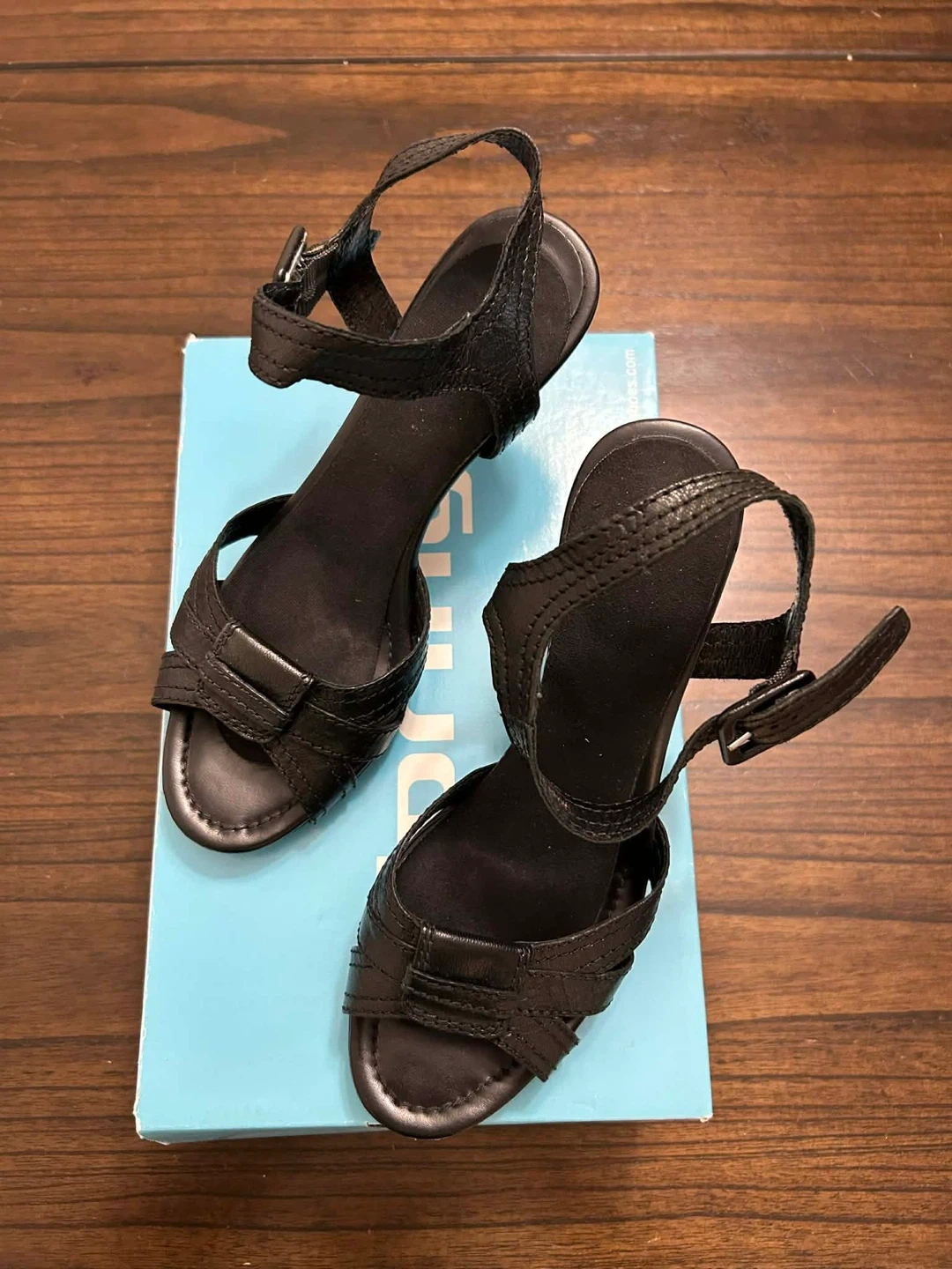 These Freeplex heels are in very great condition and ready for a new home! They are a classic black leather with a comfortable heel height. Size 38.