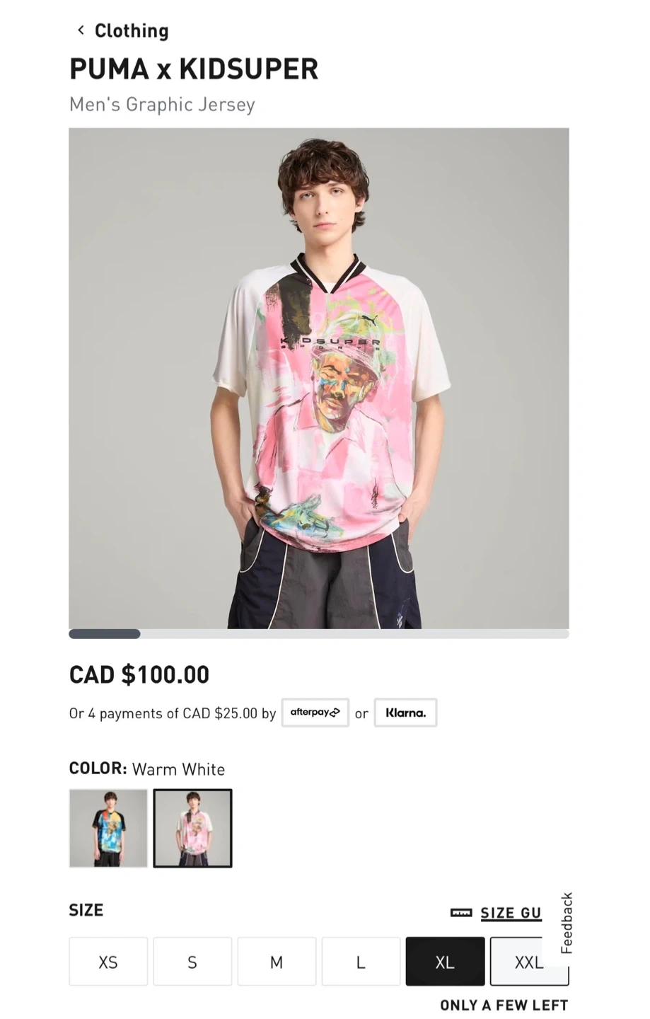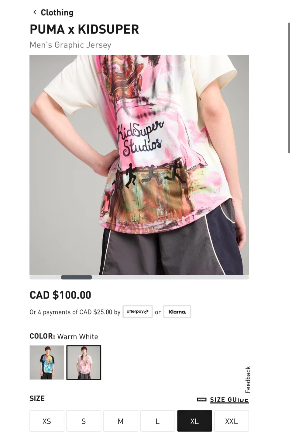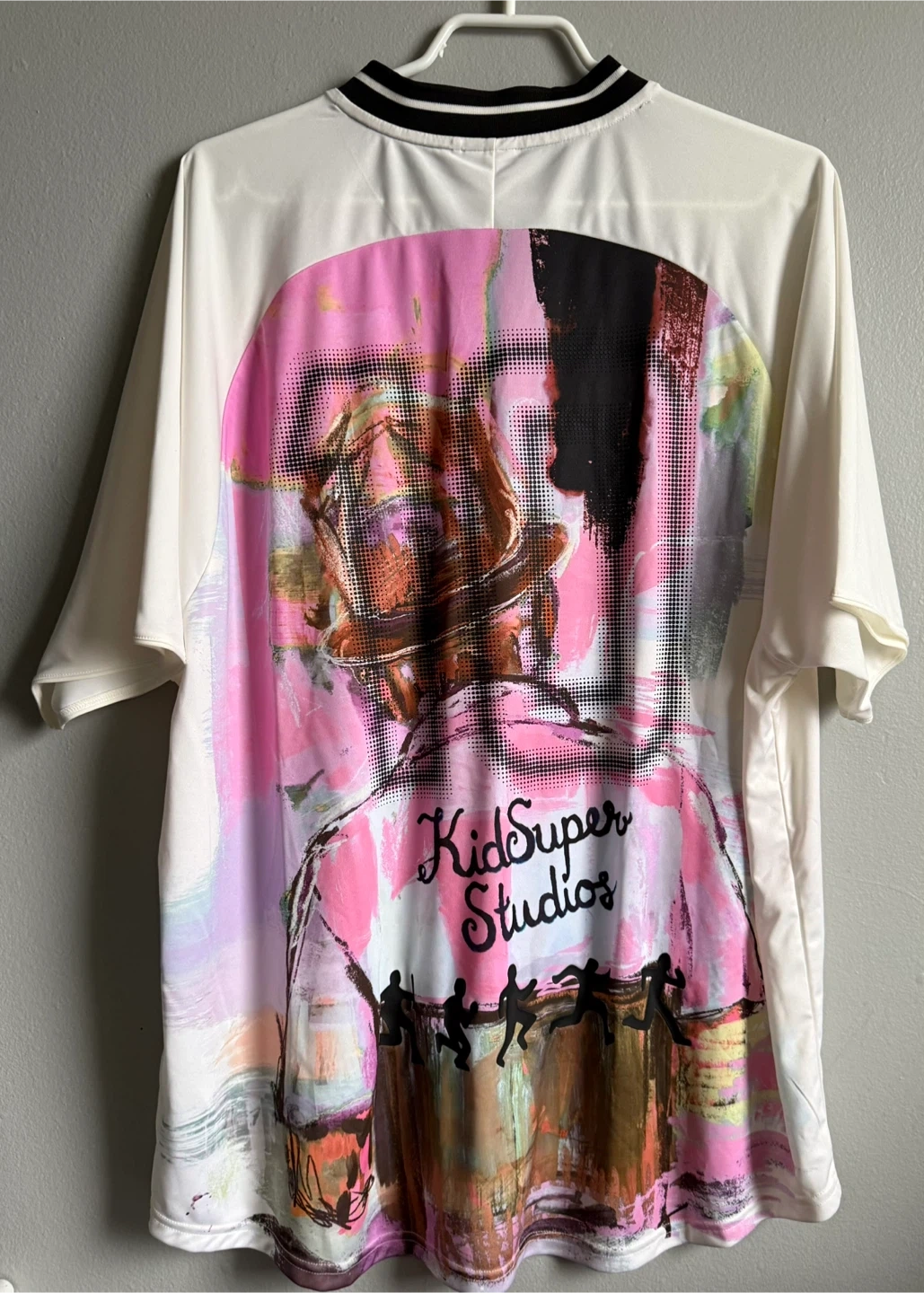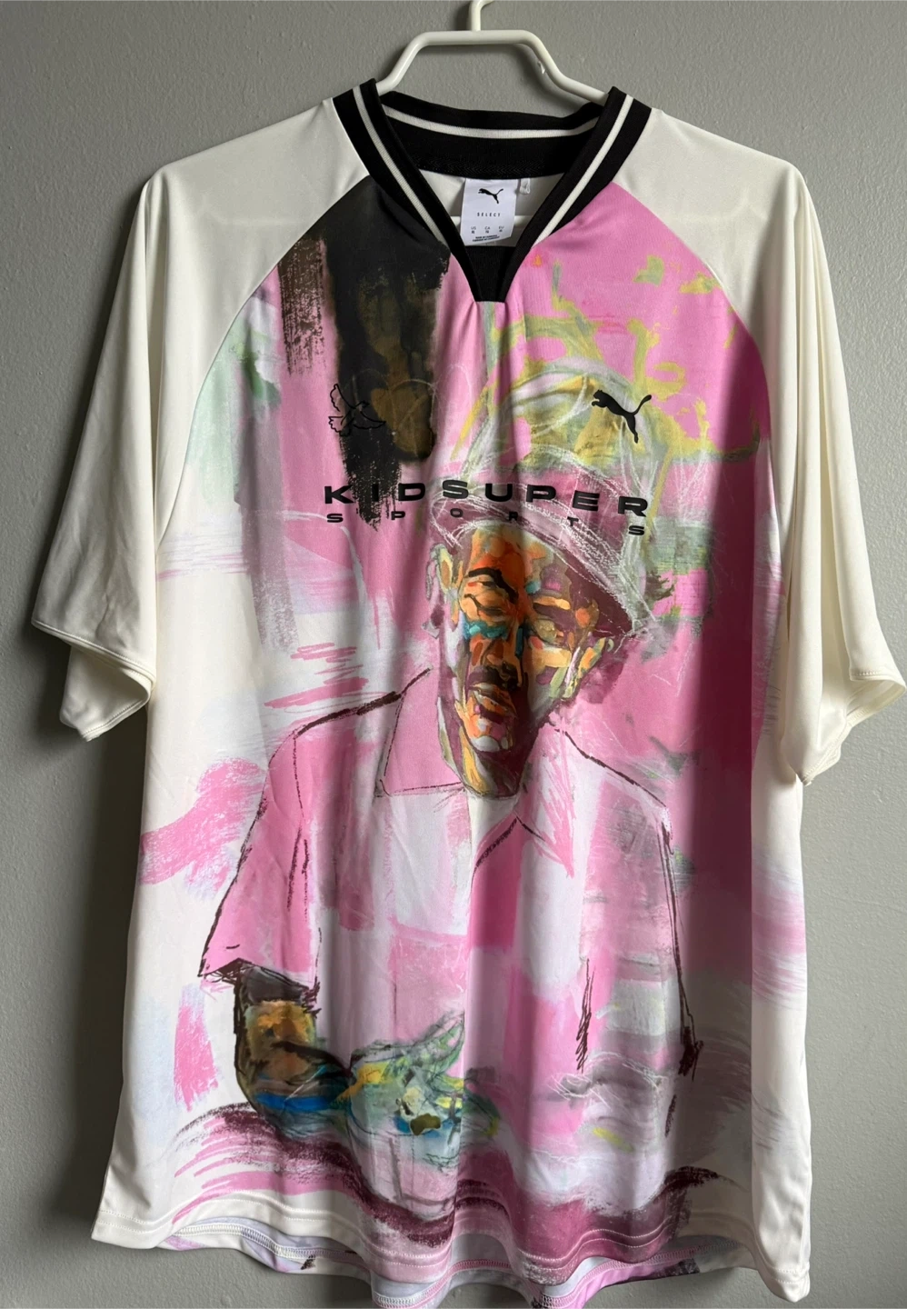 I'm selling a Puma x KidSuper men's graphic jersey in size XL! It's a warm white colour and originally retailed for $100 CAD