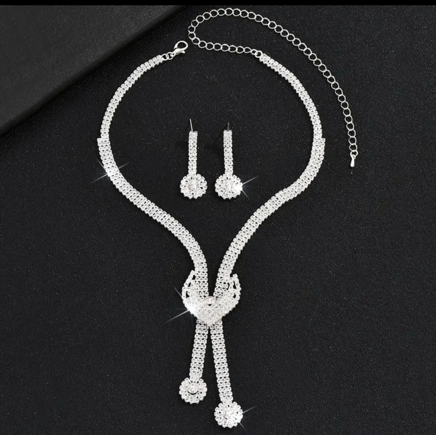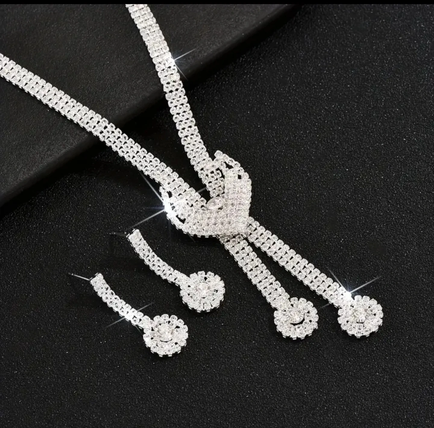 Selling a beautiful rhinestone necklace and earring set! The necklace has a lovely design with matching earrings. Perfect for adding a touch of sparkle to any outfit