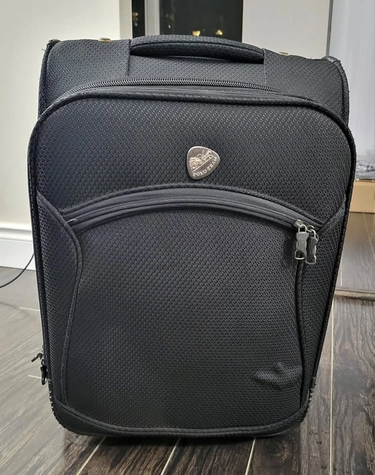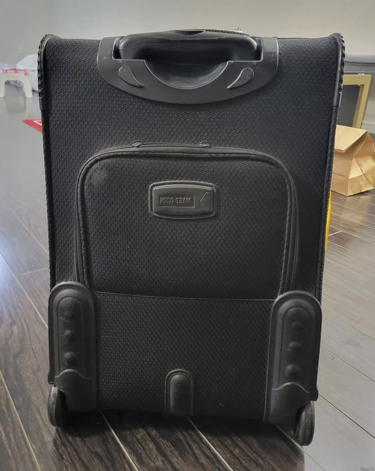 Black Polo Team softside rolling suitcase in good condition.