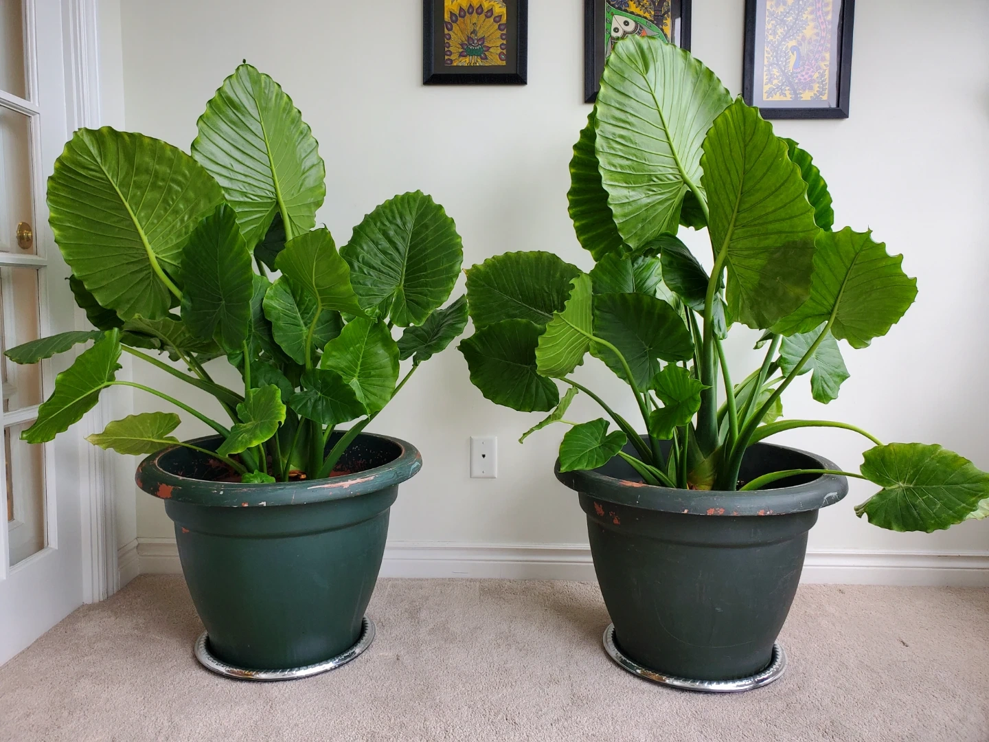 2 Huge Alocasia Odora (Elephant Ear) plants in rustic 21” plastic pots. $100 each or $170 for 2.