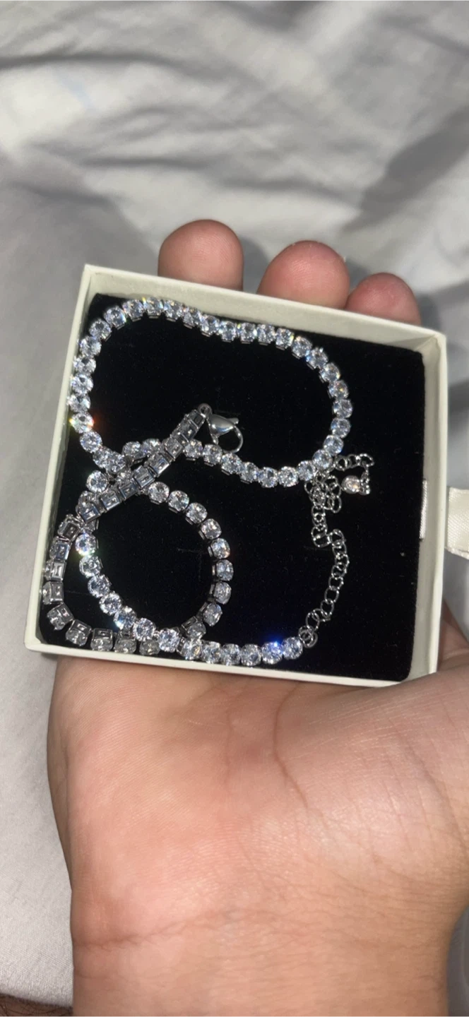 Elegant cubic zirconia tennis necklace in silver-tone finish — sparkles beautifully and comes in a gift-ready box🎁!