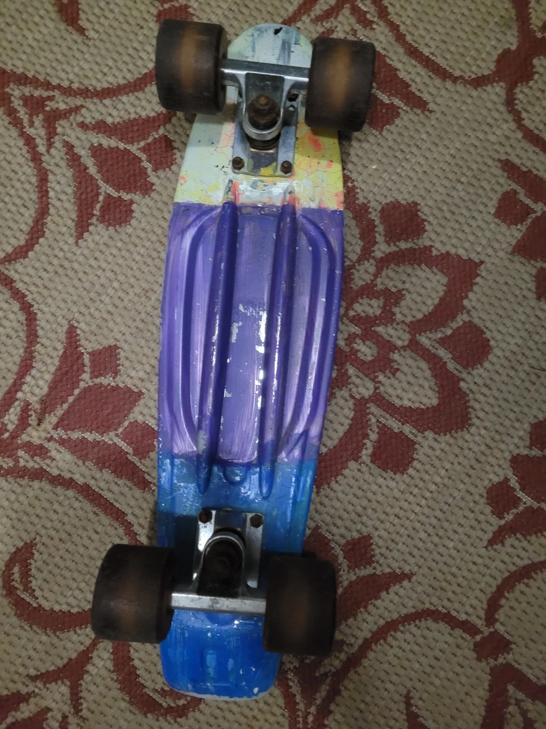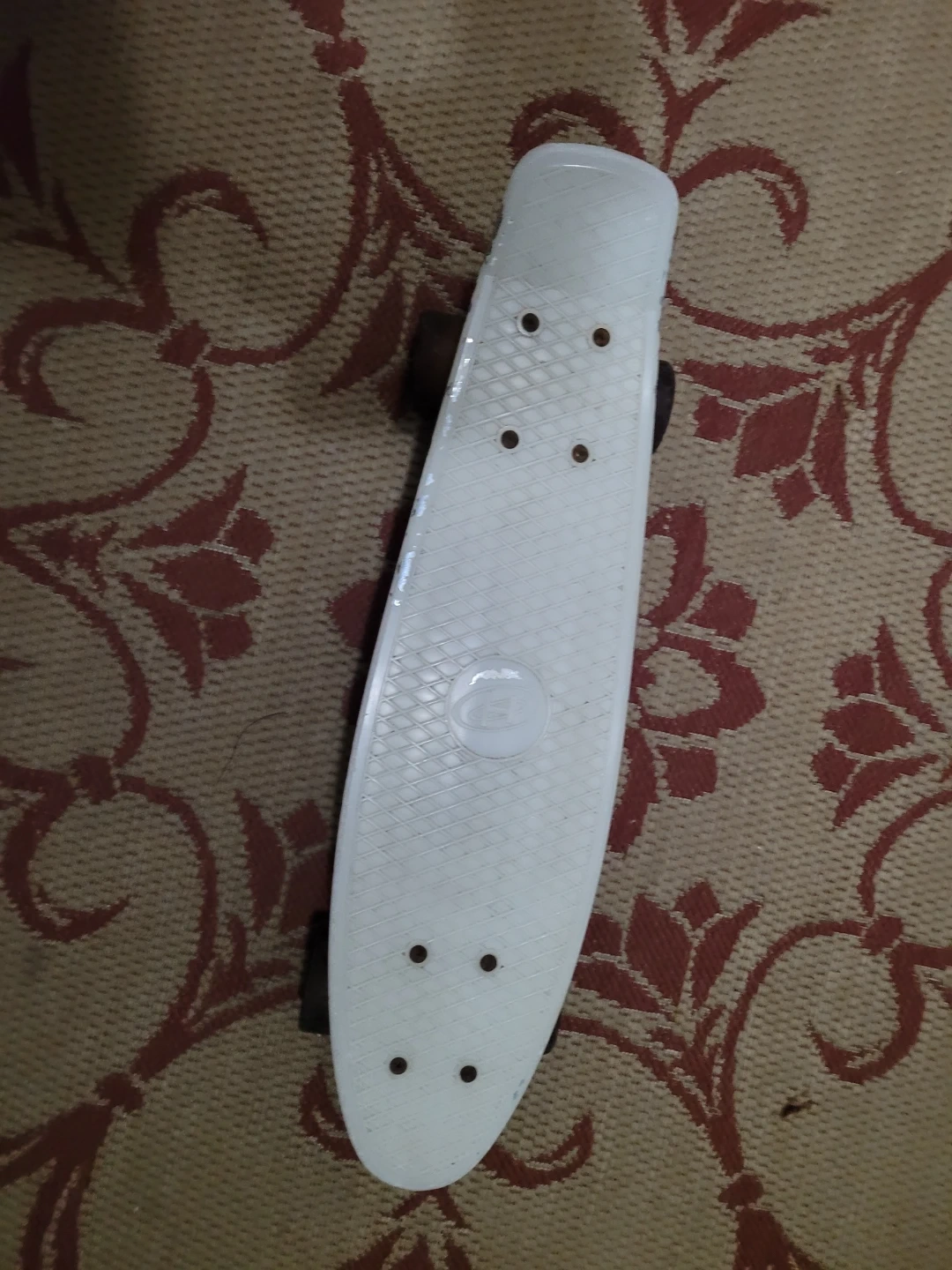 Selling a well-loved penny board. It has a white deck with some wear and tear, as shown in the pictures. It's perfect for cruising around the neighbourhood or learning some new tricks!