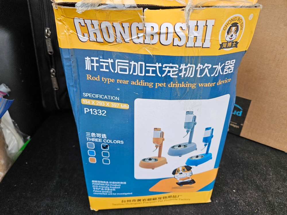 Selling a CHONGOSHI pet drinking water dispenser. It's a rod-type rear adding pet drinking water dispenser. Specification is 194 x 293 x L. Great for keeping your furry friend hydrated! 15.00