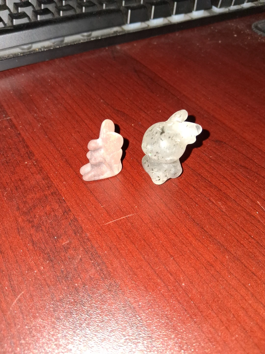 Here are two cute crystal figurines! One is a fairy and the other is a reindeer. The reindeer's antler broke and has been glued. They're in okay condition and would look great on a shelf or desk