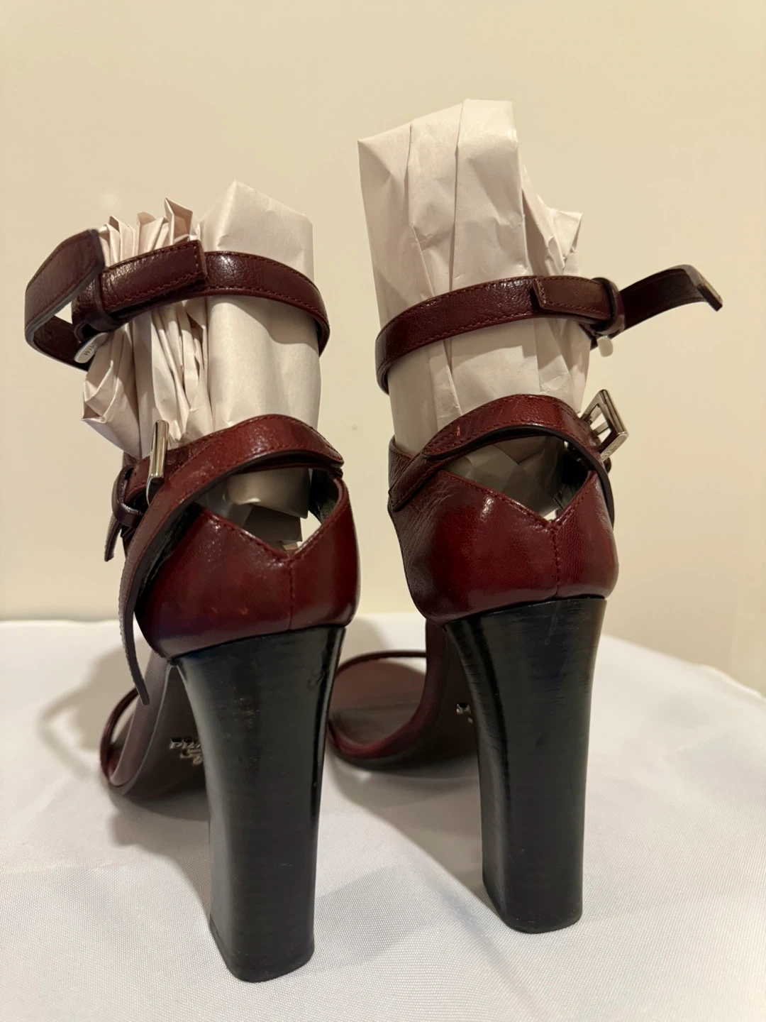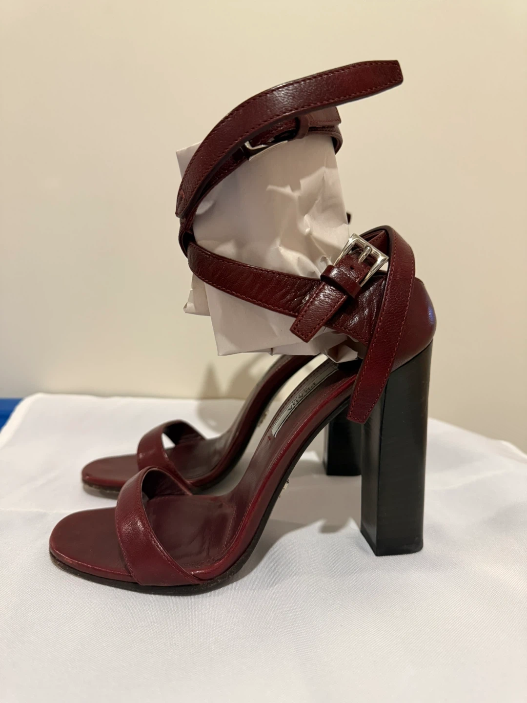 Prada Leather Block Heel Sandals