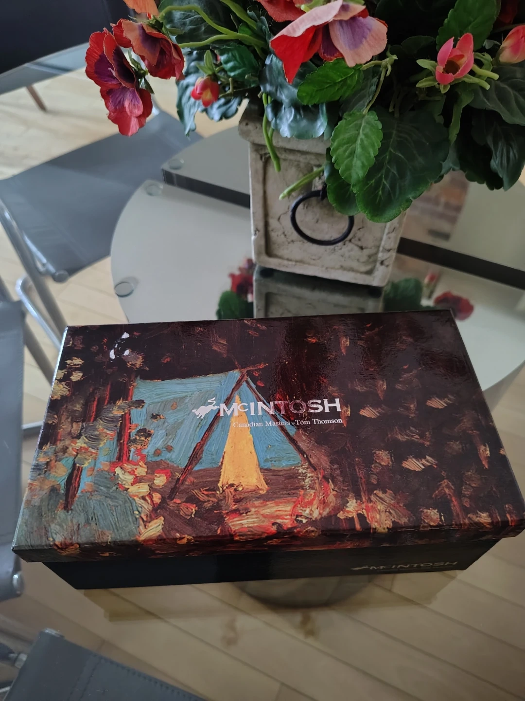 Brand new, never used gift set of 2 McIntosh Tom Thomson Campfire Mugs, still in the original satin-lined presentation box. Perfect for a last-minute Christmas gift for someone special seeing as most shipping deadlines had passed — tasteful, practical, and very gift-worthy. Details: • Bone china • 11 oz capacity each • Classic campfire mug shape • McIntosh / Tom Thomson artwork • New in box Perfect for gifting, collectors of Canadian art, or anyone who appreciates quality mugs with a story. 📍 Pickup in downtown Toronto (King West) 📩 Send a message if interested.