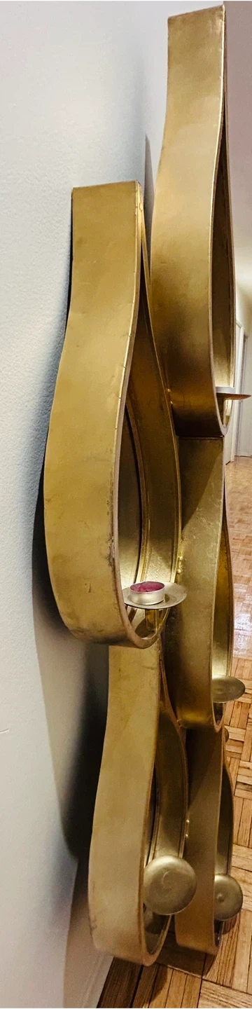 Unique gold-coloured metal wall candle holder in a teardrop design. It's a lovely piece to add some character to any room!