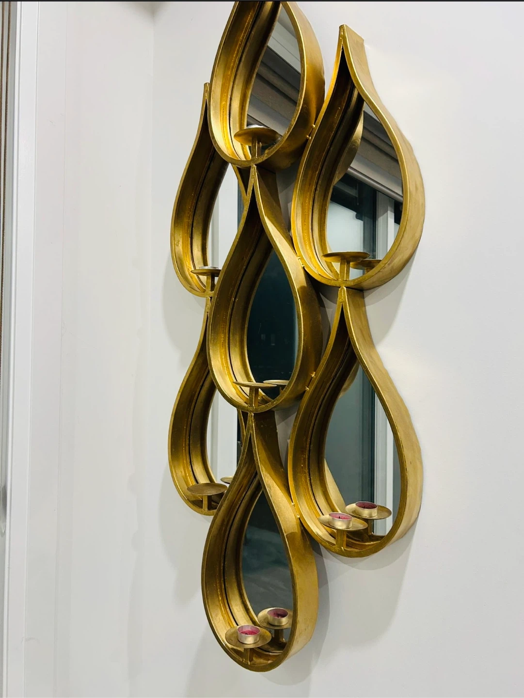 Tear drop golden accent piece with candle holders and mirrors