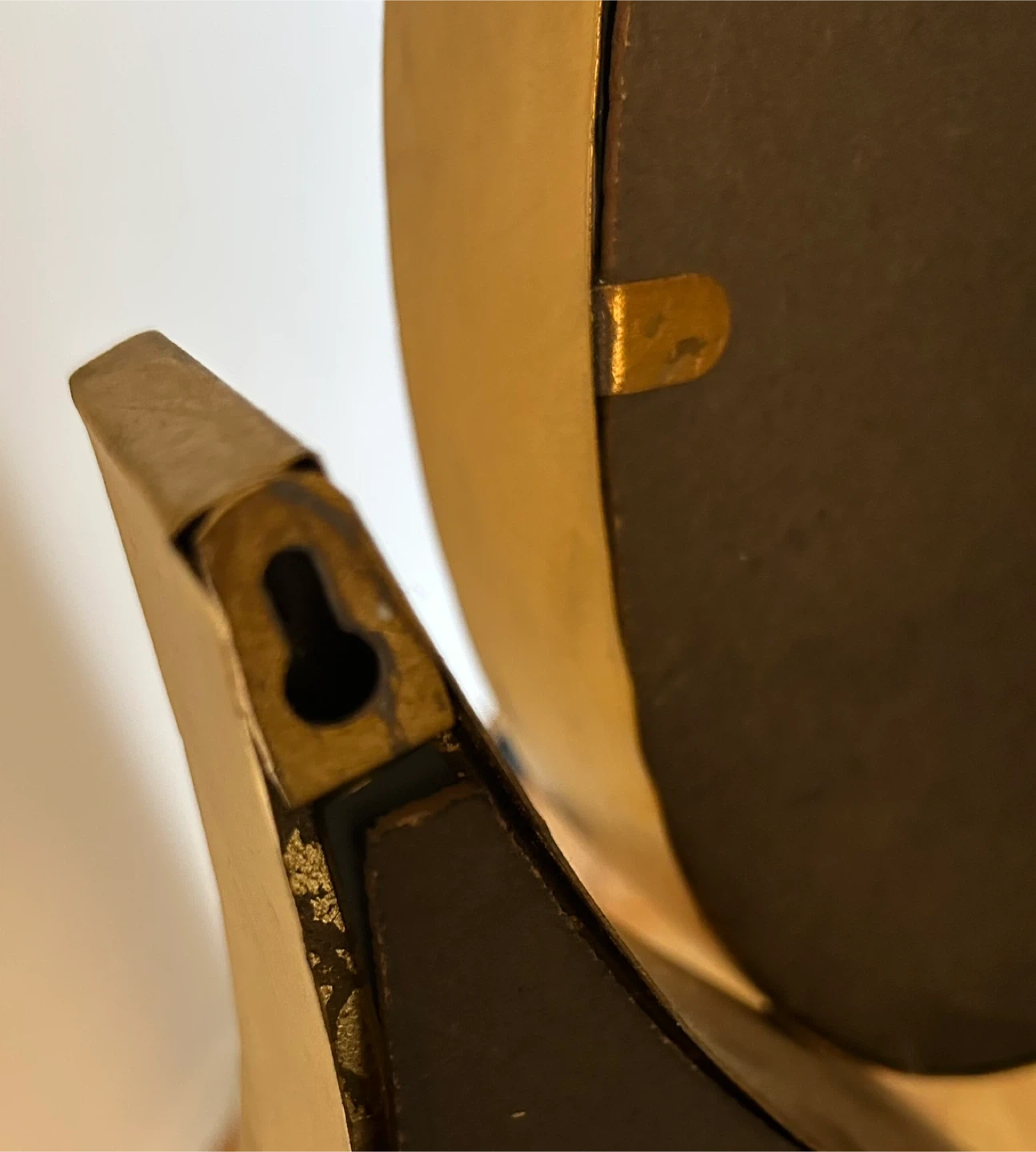 Its a heavy duty and beautiful mirror piece with golden metal frames. There are some chips as you see in picture but can be covered by using a golden spray bottle from home depot.
