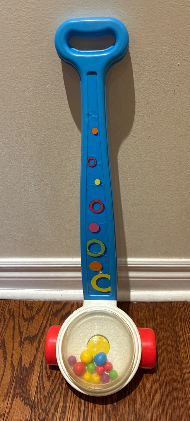Giving away a vintage Fisher-Price Corn Popper toy! It's in good condition and ready for a new generation of play. This classic toy is perfect for toddlers learning to walk and explore. The colourful balls pop around as it's pushed, providing hours of fun.