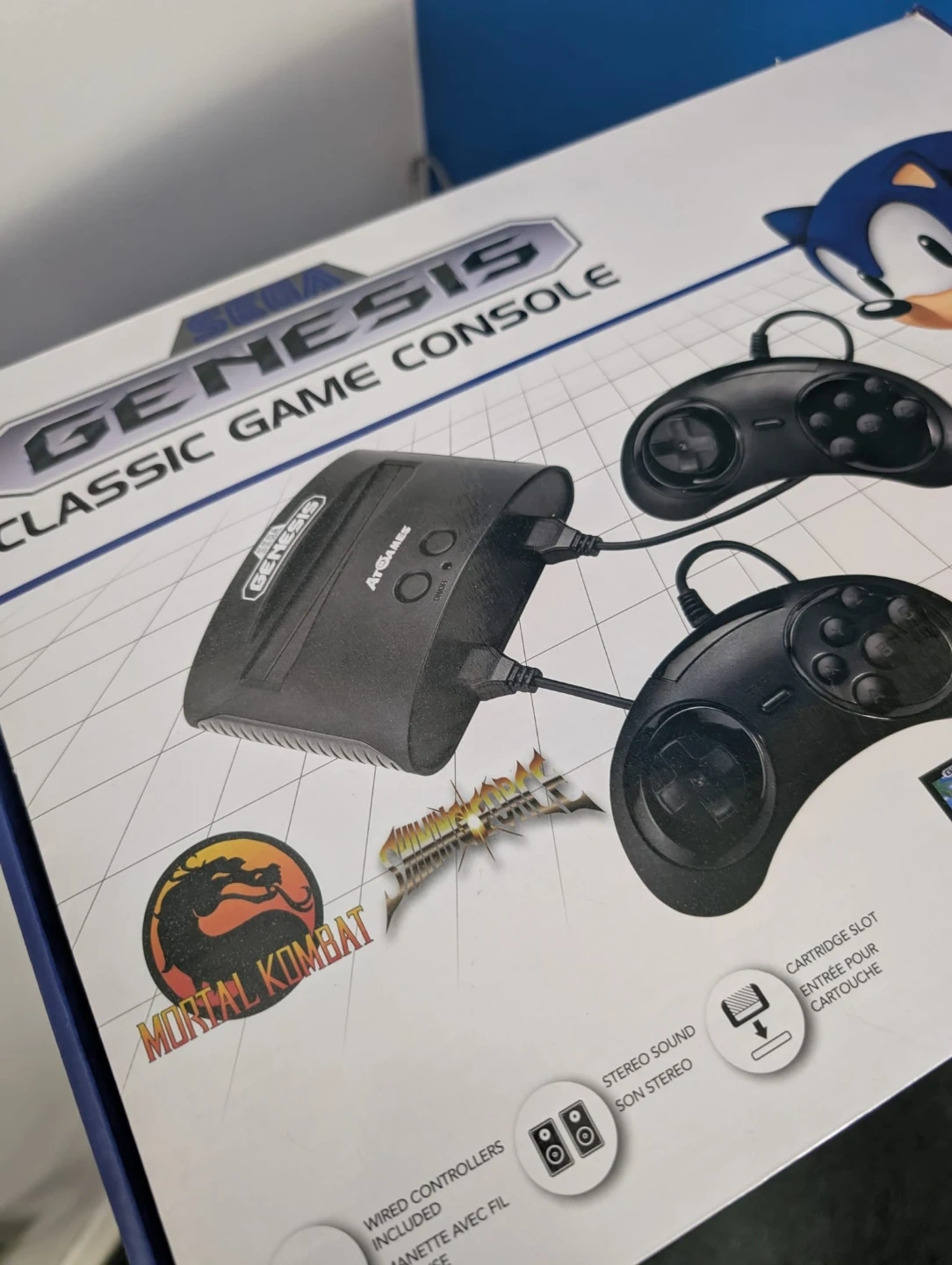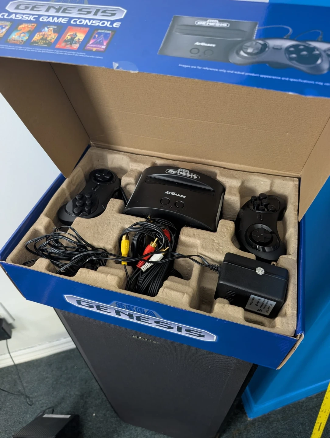 Selling a Sega Genesis Classic Game Console by AtGames! It comes with 81 built-in games and includes two wired controllers, so you can play with a friend right away. The console is in great condition and includes all the necessary cables and the power adapter. Perfect for reliving those classic gaming memories!