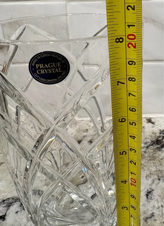 Beautiful large cut lead Chrystal Voz made in Czech Republic. This has been in my family probably close to 40 years. Only been used a couple of times, it has been displayed in the China cabinet almost the entire time. It is 8 inches tall by 5 inches wide at the top There are no chips, cracks or scratches of any kind, it is in pristine condition.
