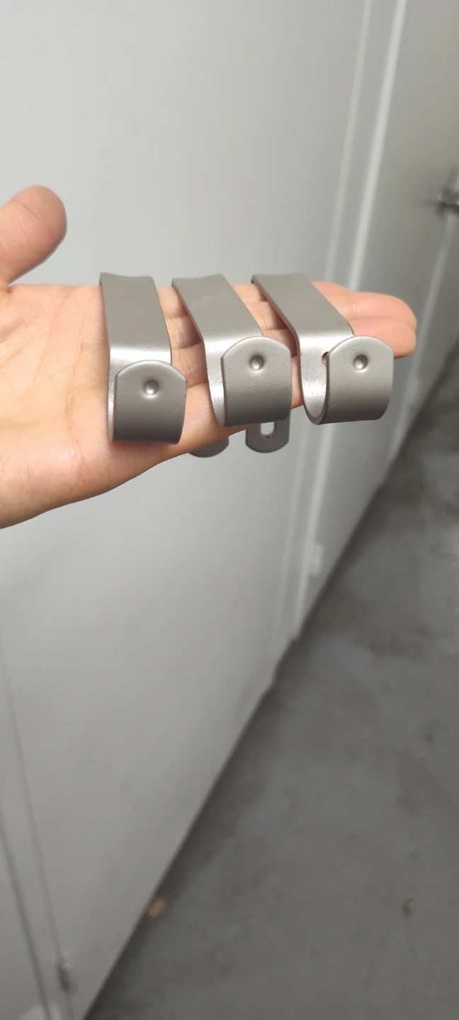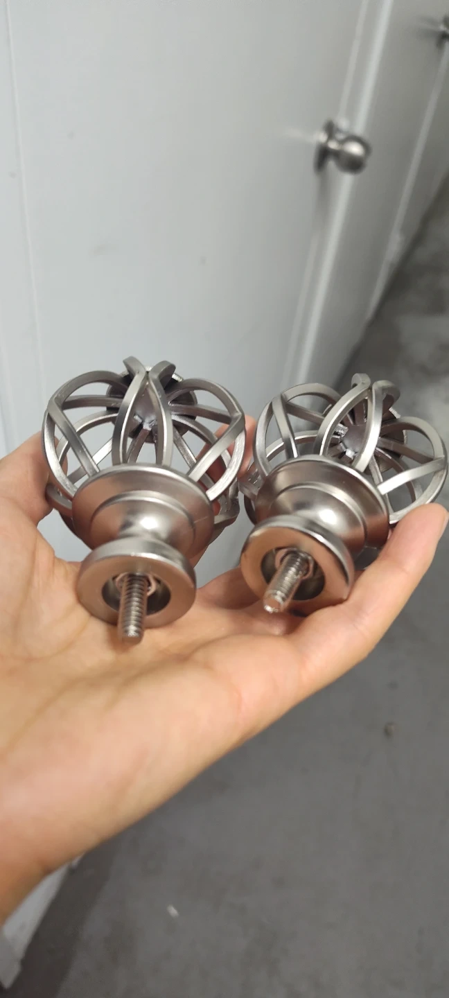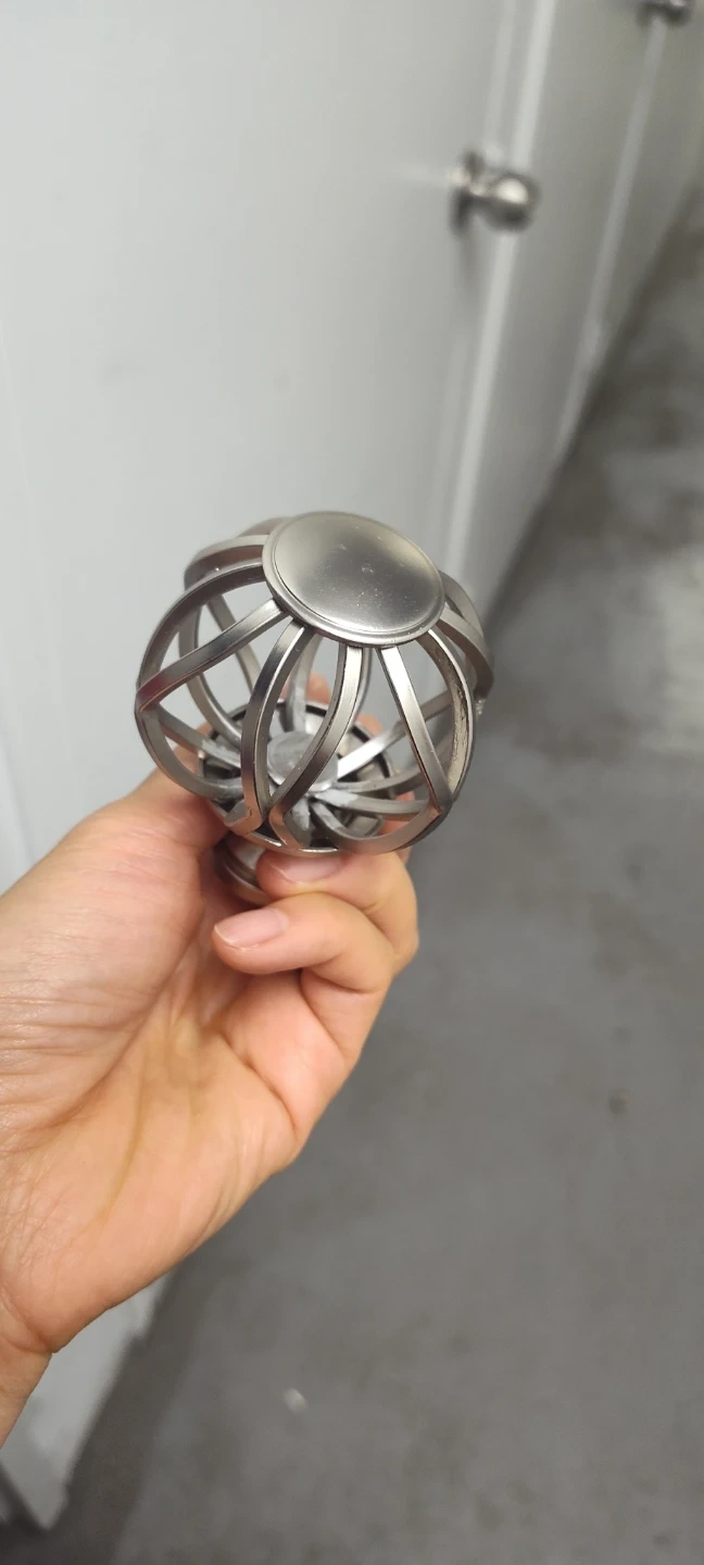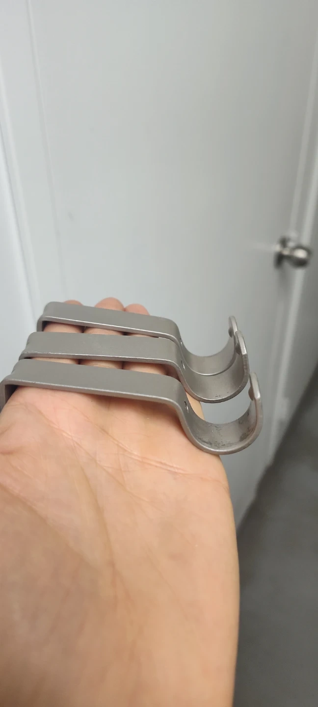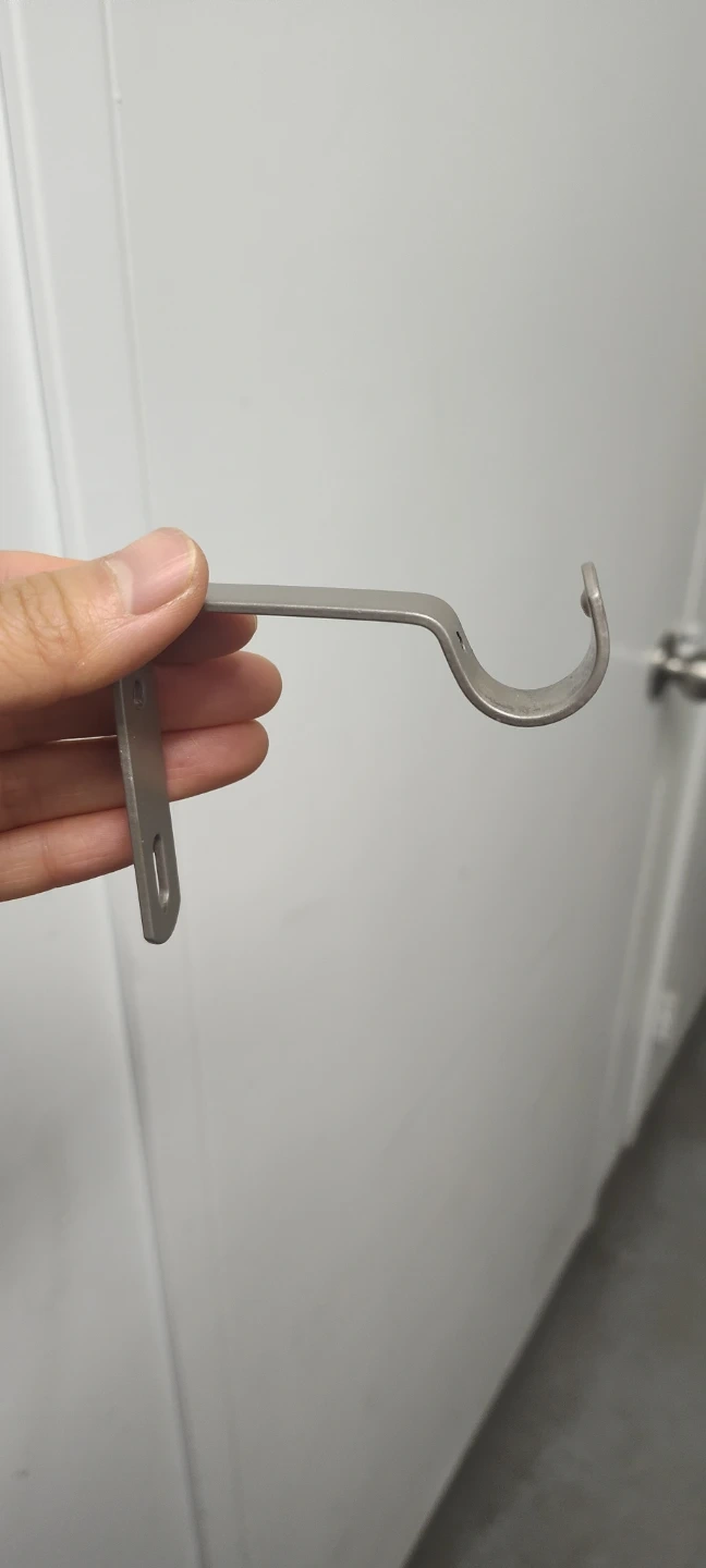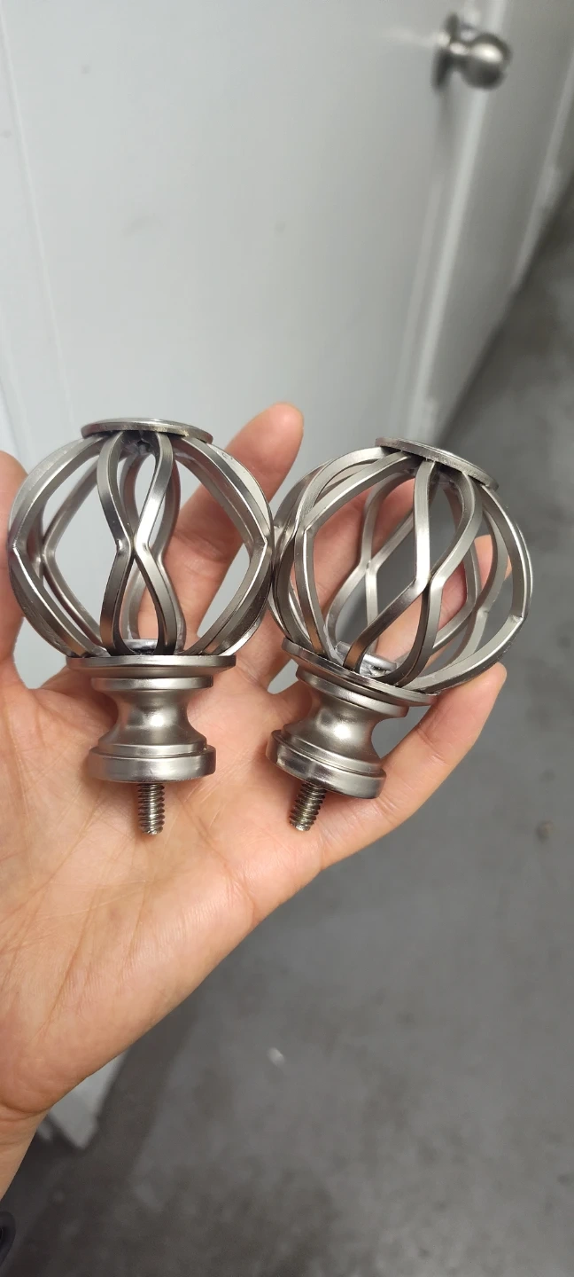 Selling a set of curtain rod finials and brackets. They have a modern, open design and a brushed nickel finish. Perfect for adding a stylish touch to your window treatments!