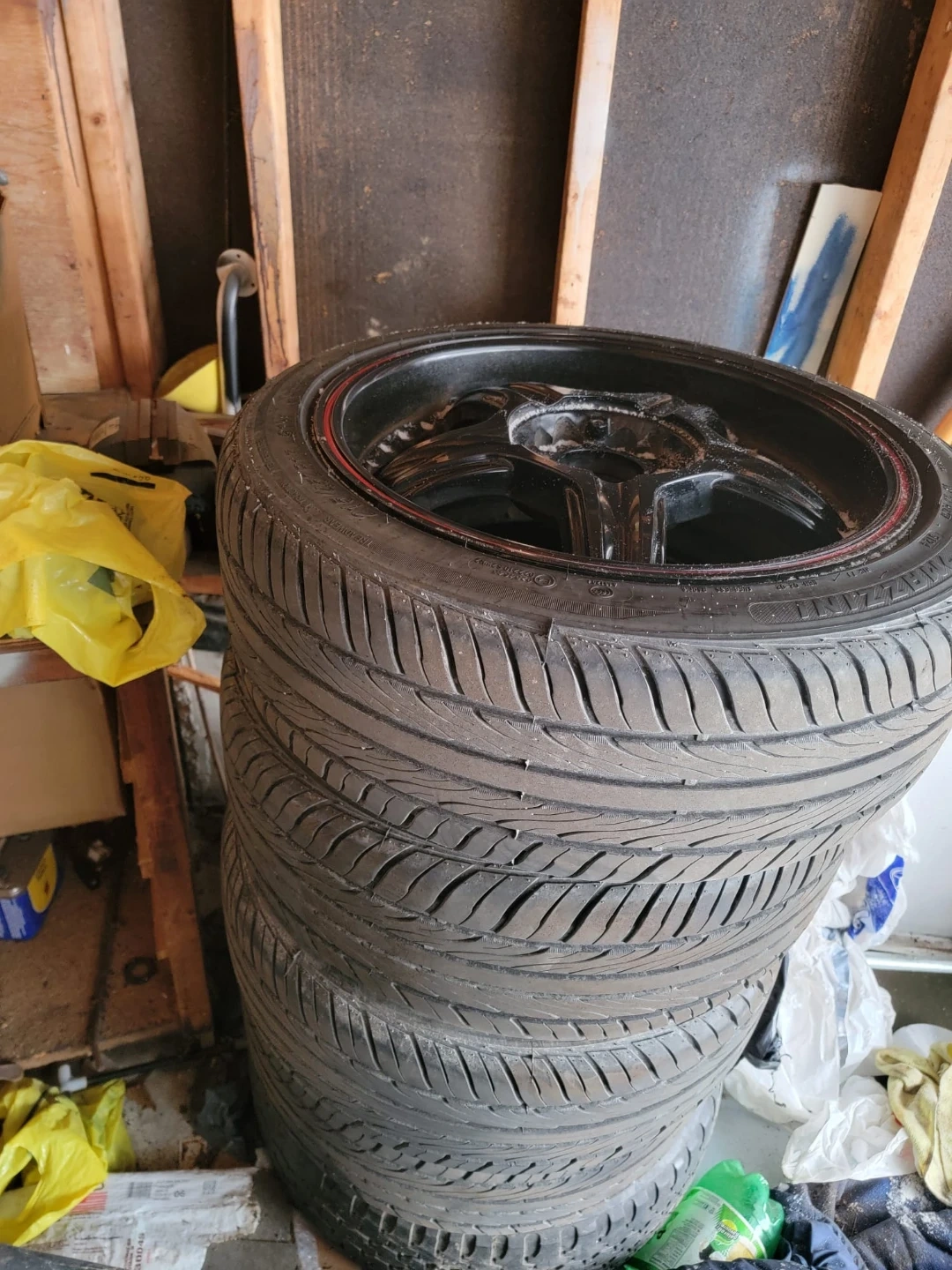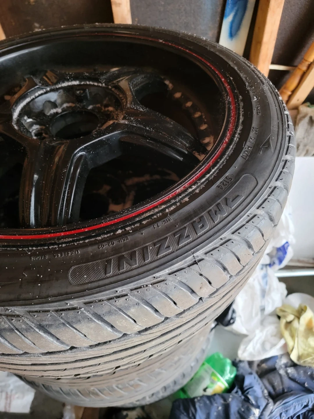 Selling a set of Mazzini tires. The size is 215/45ZR17. They're black with a red stripe. Please check the photos for condition! Installed new a month ago