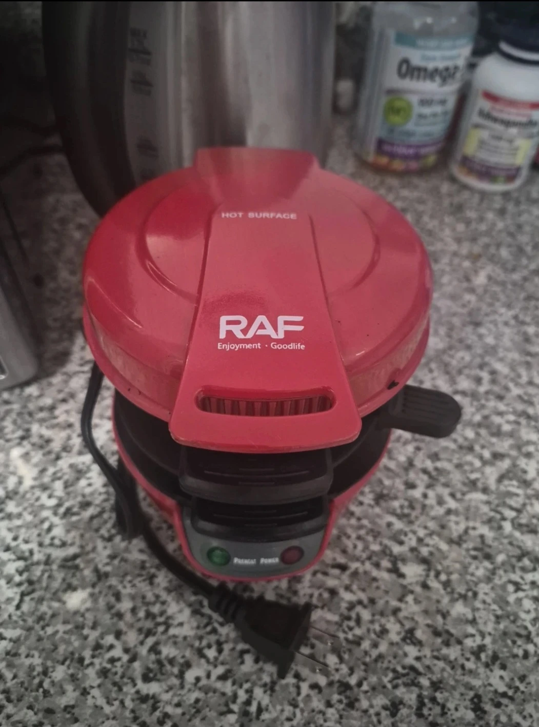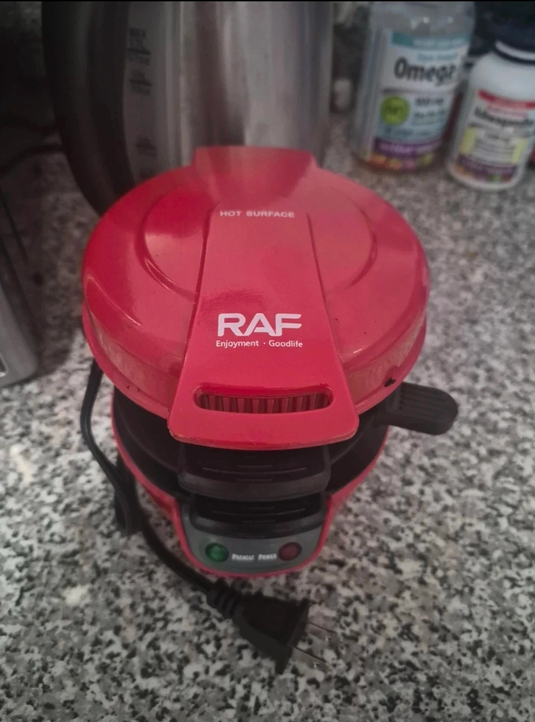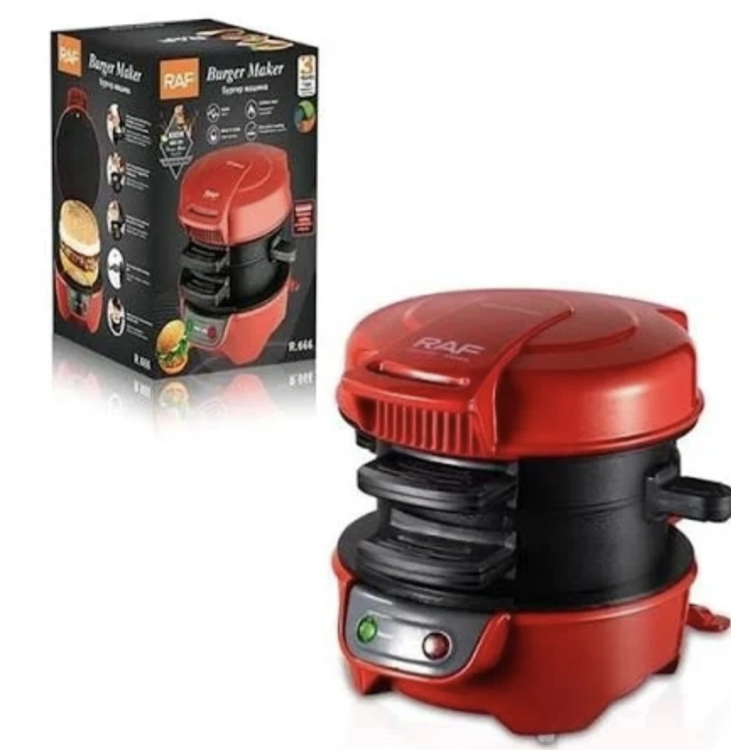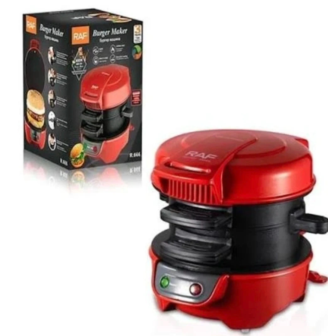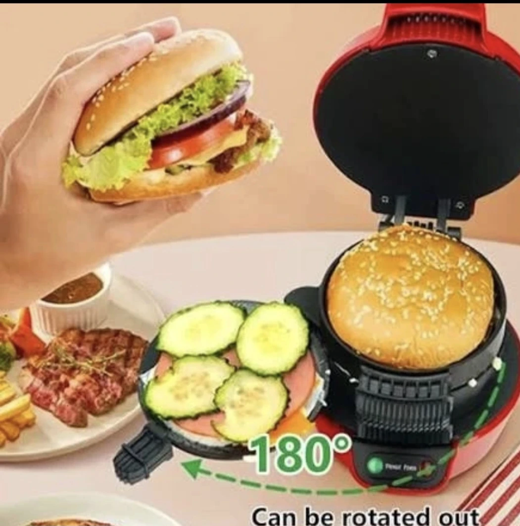 Selling a RAF Burger Maker in excellent condition! It's red and black, and can be rotated out 180 degrees for easy access. It's perfect for making delicious burgers at home!