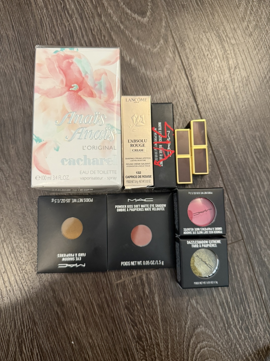 Cacharel Anais Anais, Lancome L'Absolu Rouge, MAC Eyeshadow