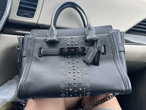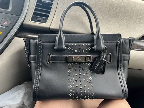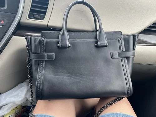 The Coach Swagger 27 Black Leather Handbag in Oxblood is a stylish and versatile accessory for any woman. This bag is elegant and well taken care of.