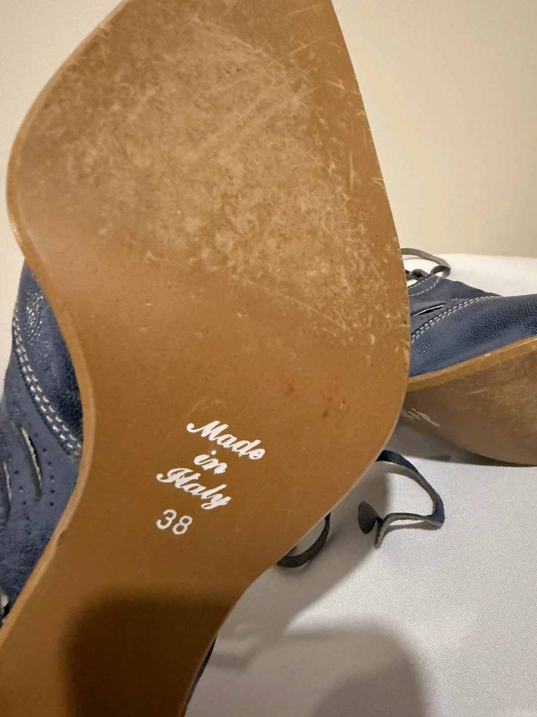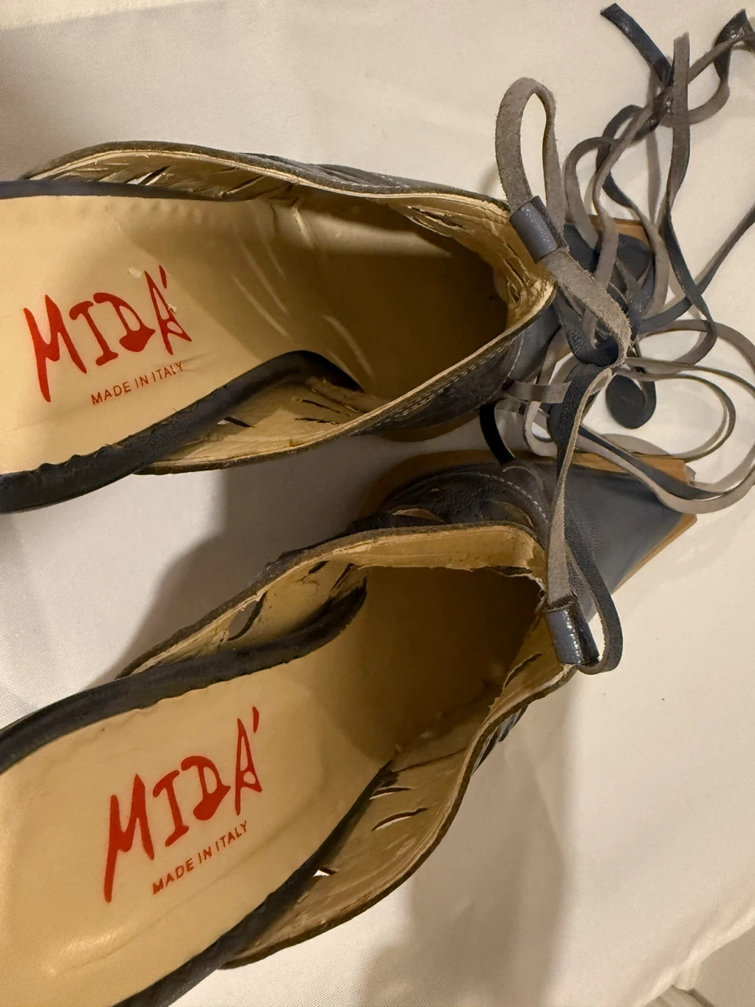 These are a pair of Mida heels from Italy, size 38. They are made in Italy and feature a unique cutout design. The heels are in good condition!