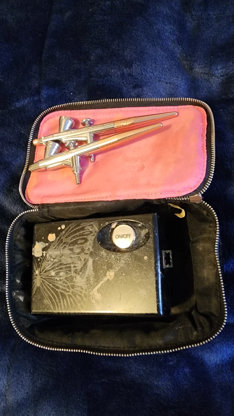 Selling an airbrush kit that comes with a carrying case. It appears to include an air compressor and two airbrushes. Great for artists or hobbyists! Cord not included ( unless I find one ).