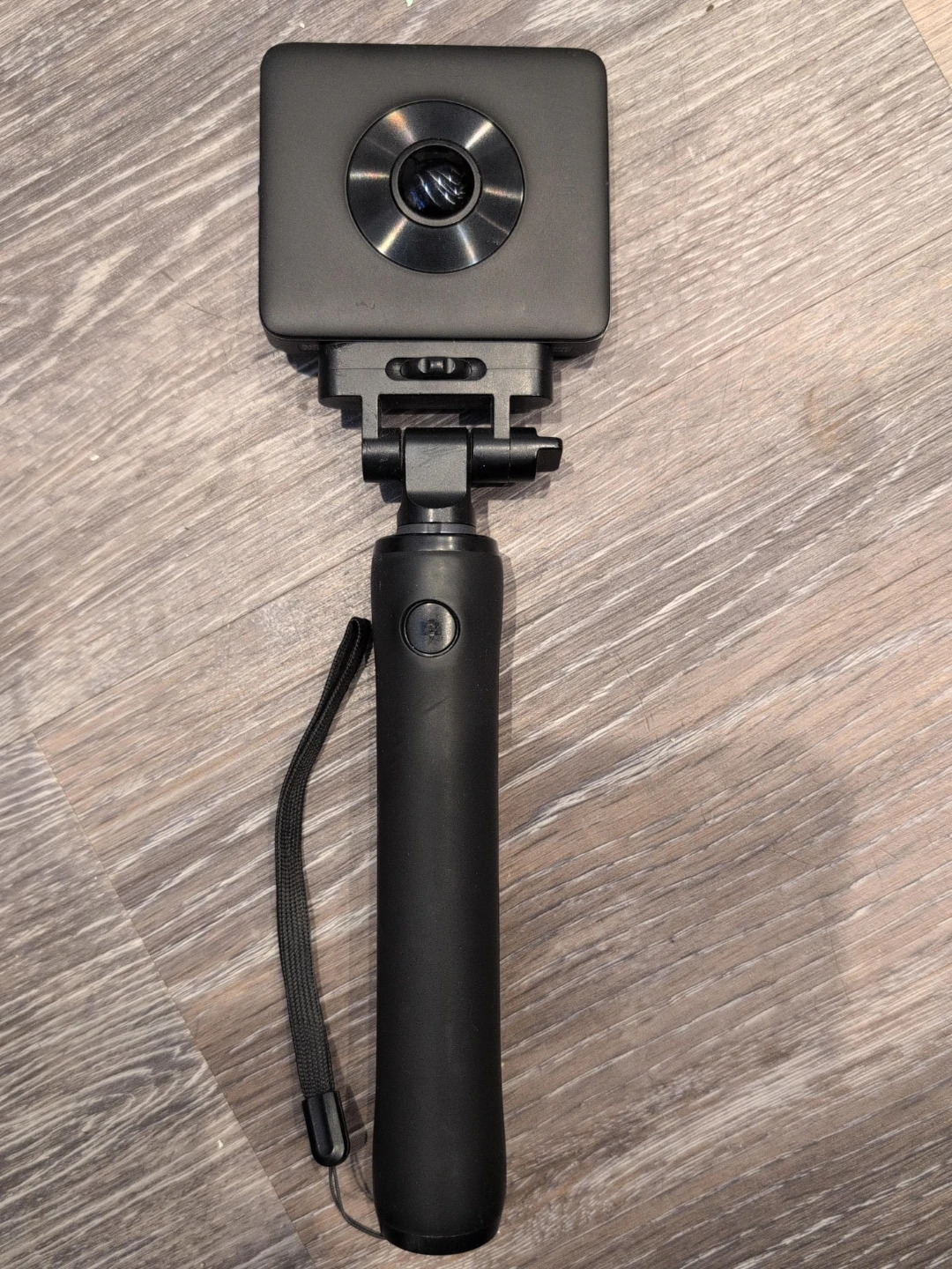 PC and Android app, not sure about Apple. Battery hold 10-20 minutes of Video. Video 4k MPEG, Photo raw around 32 Mp (not sure). Comes with invisible selfie stick! You can test it before purchasing. Scratches on body and lenses but image still clear!