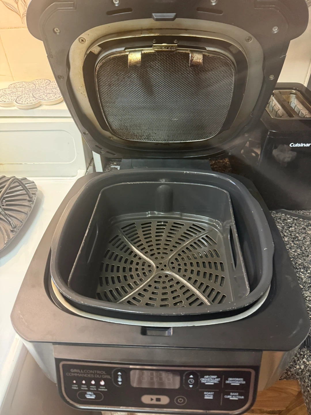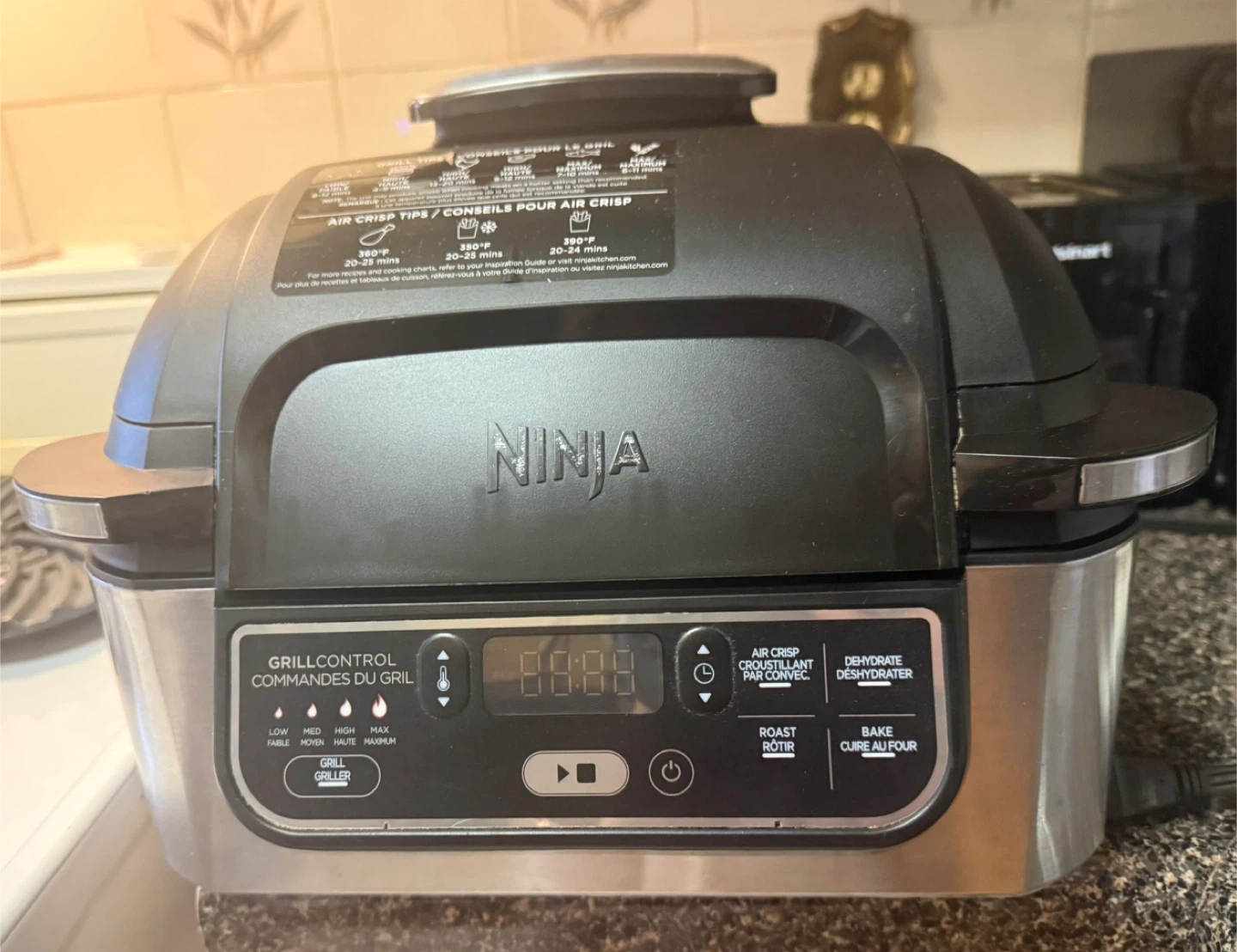 Selling a Ninja Foodi Grill! It's in good condition and ready for a new home. It has grill control and multiple functions like air crisp, roast, bake, and dehydrate.