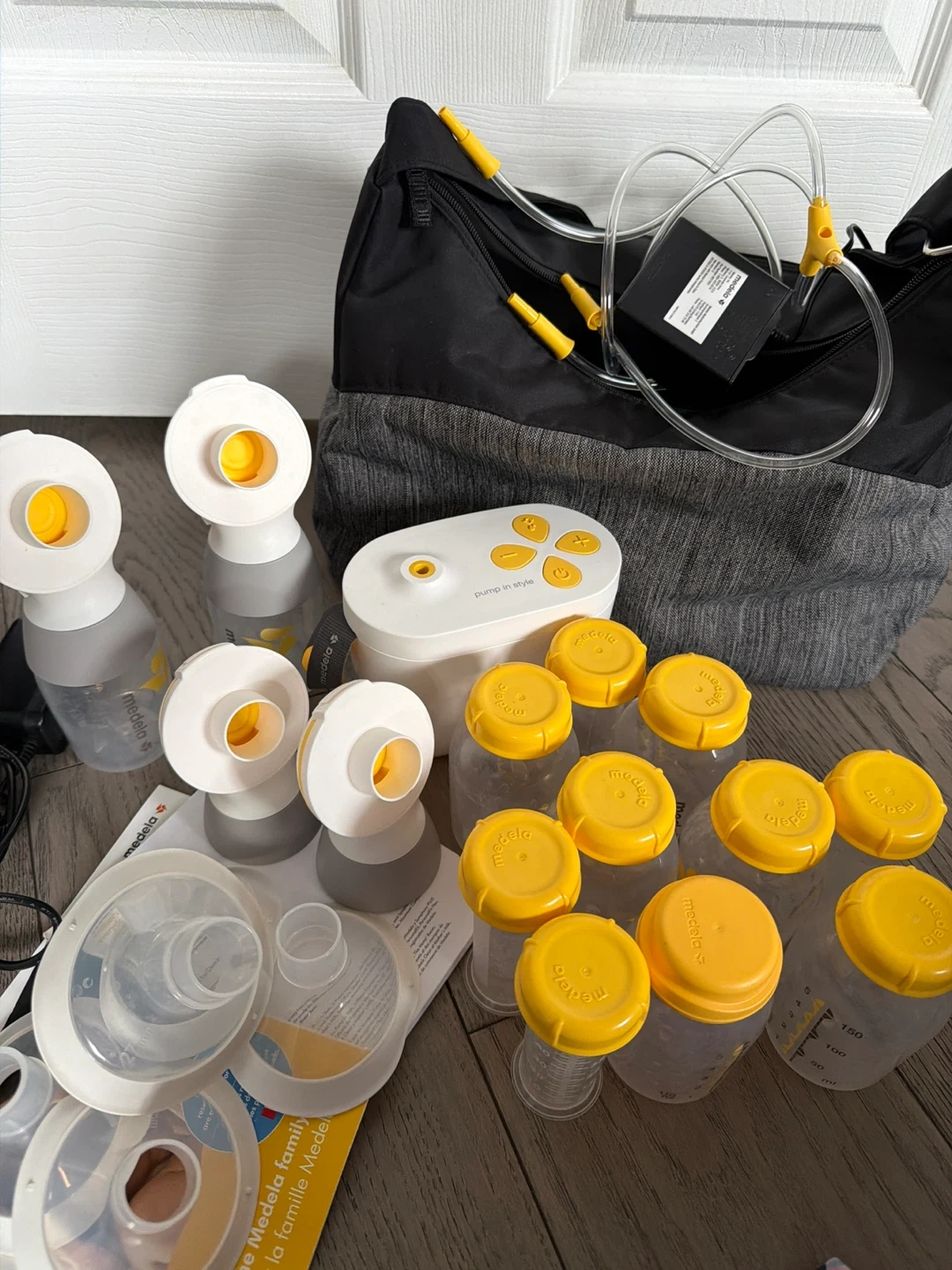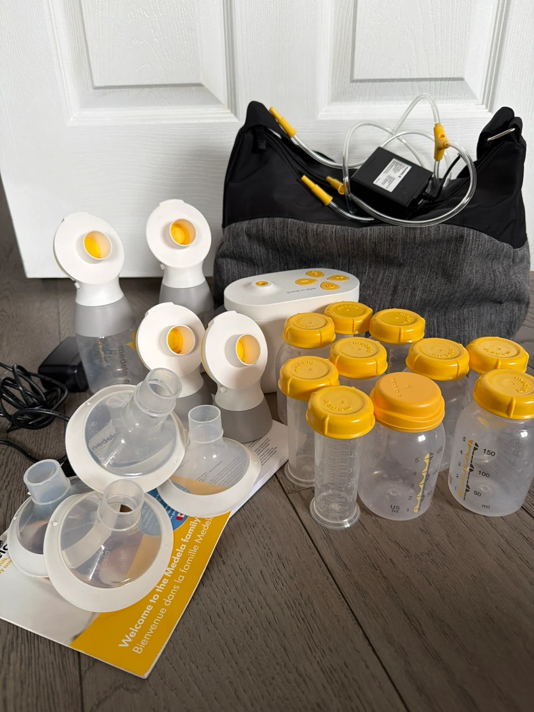 Selling a Medela Pump In Style breast pump set. It comes with all the parts you see in the photos, including bottles and the carrying bag. Great for new parents! Used. I have additional new micro steam bags.