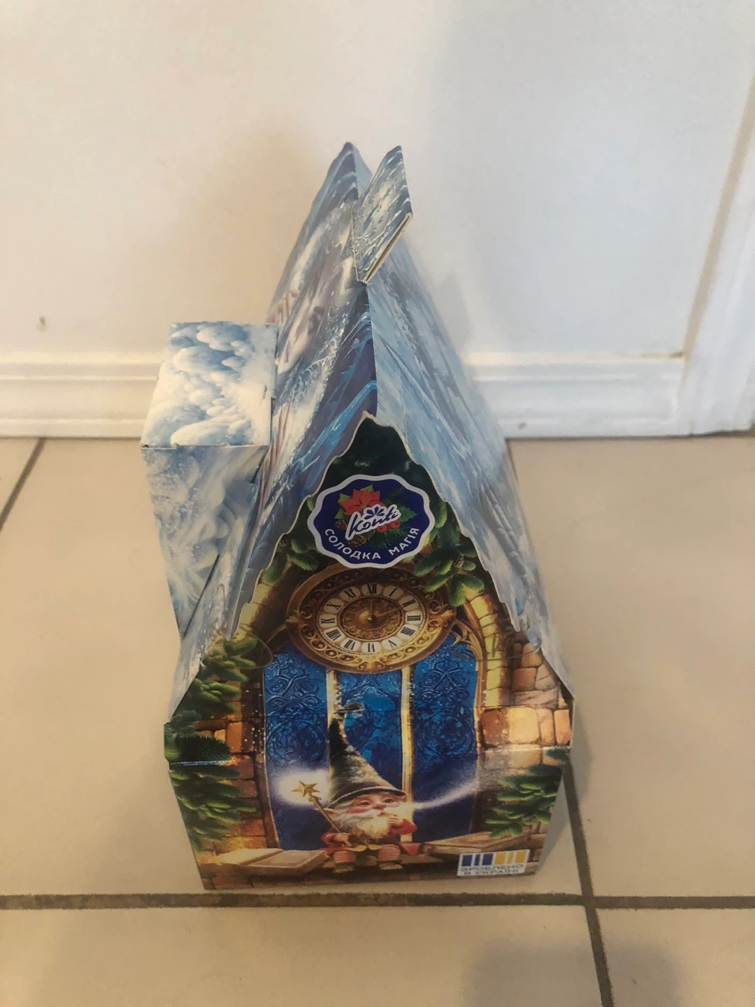 I opened the house to show what candies are in. This can be still put back.
