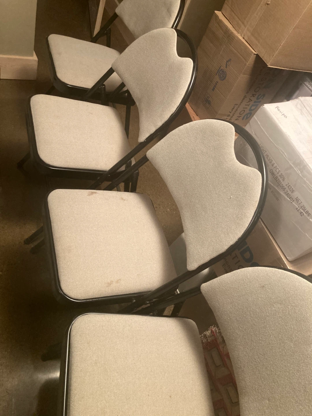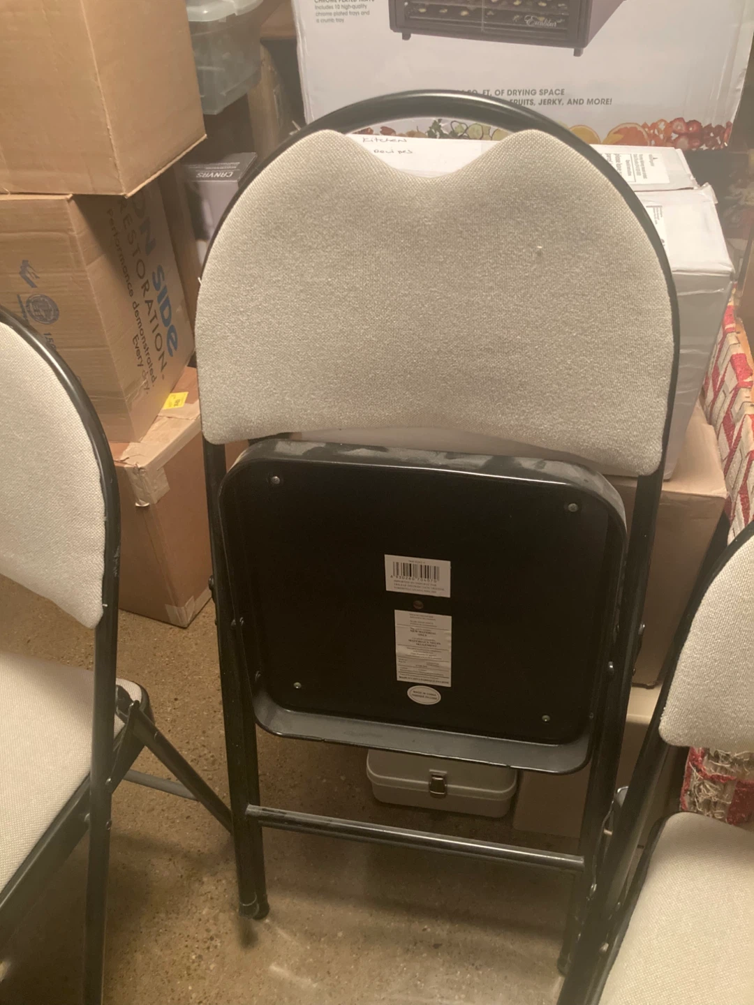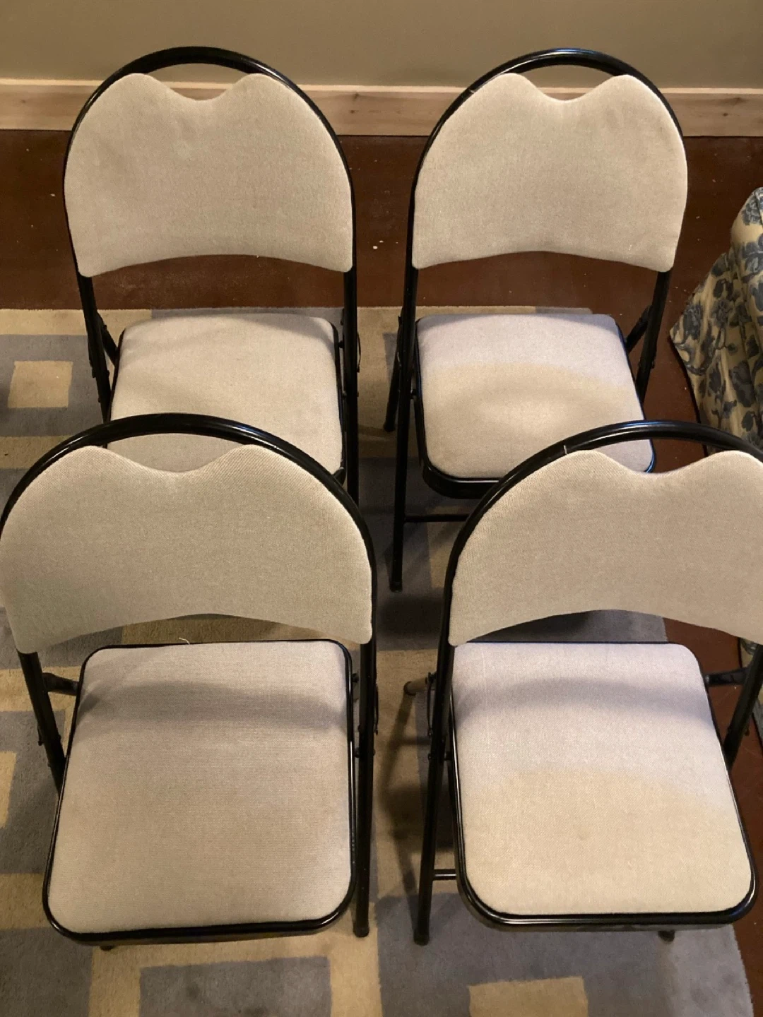 just in time for holiday company! do you need more chairs? à set of 4 folding chairs. metal legs and upholstery— padded for your comfort.