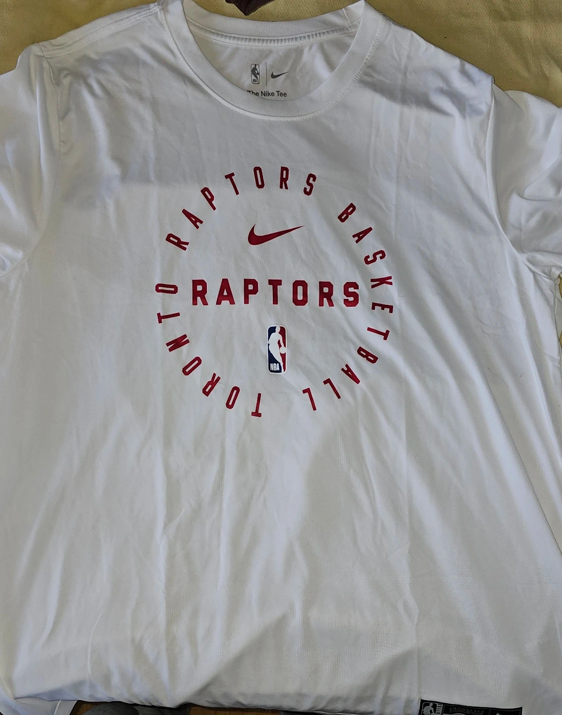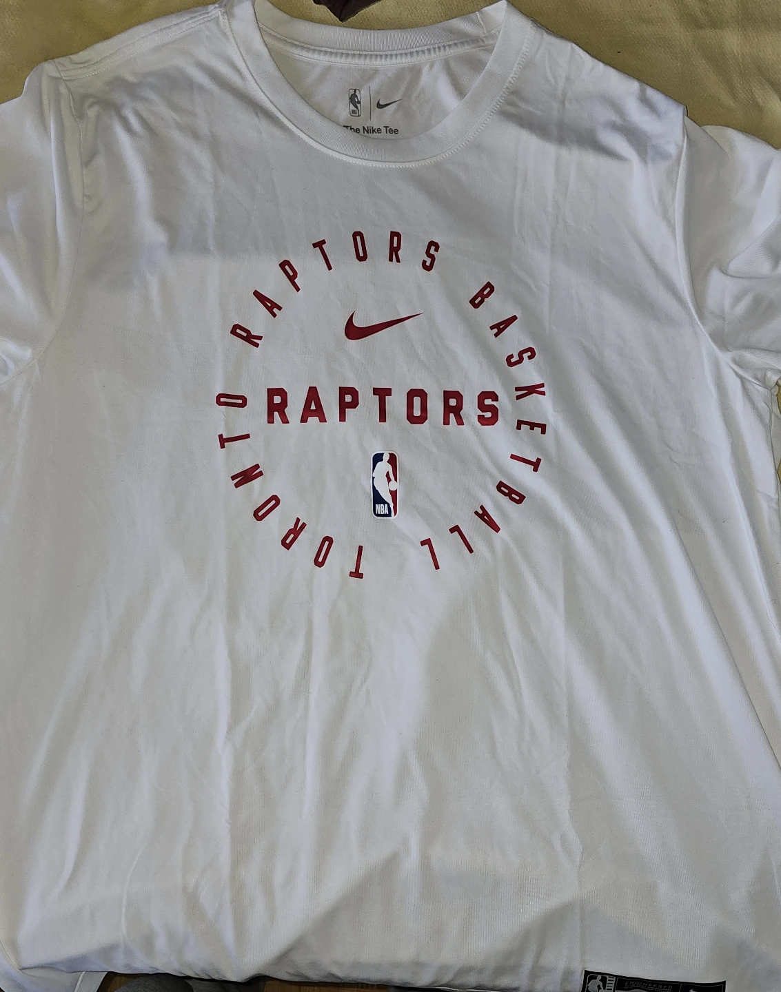 Selling a Nike Toronto Raptors basketball t-shirt. It's white with the Raptors logo in red. Great for showing your team spirit!