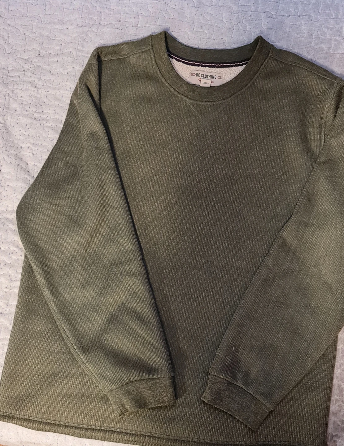 1 / 21 / 2Buy & SellBC Clothing Olive Green Sweater - Size XLargeBC Clothing Olive Green Sweater - Size XLarge$10Selling a BC Clothing sweater in olive green. It's a size x large. A great comfy sweater for everyday wear!ConditionGoodSizeXLBrandBC ClothingWHERE TO MEETGraystone ParkView MapSELLERverifiedameenGlenshephard Park1063 reviews0 chats·0 favorites·2 viewsSEND CHAT TO SELLERHi ameen! I’m interested in your listing.Hi ameen! I’m interested in your listing.Get the Karrot app to chatSign In to chat