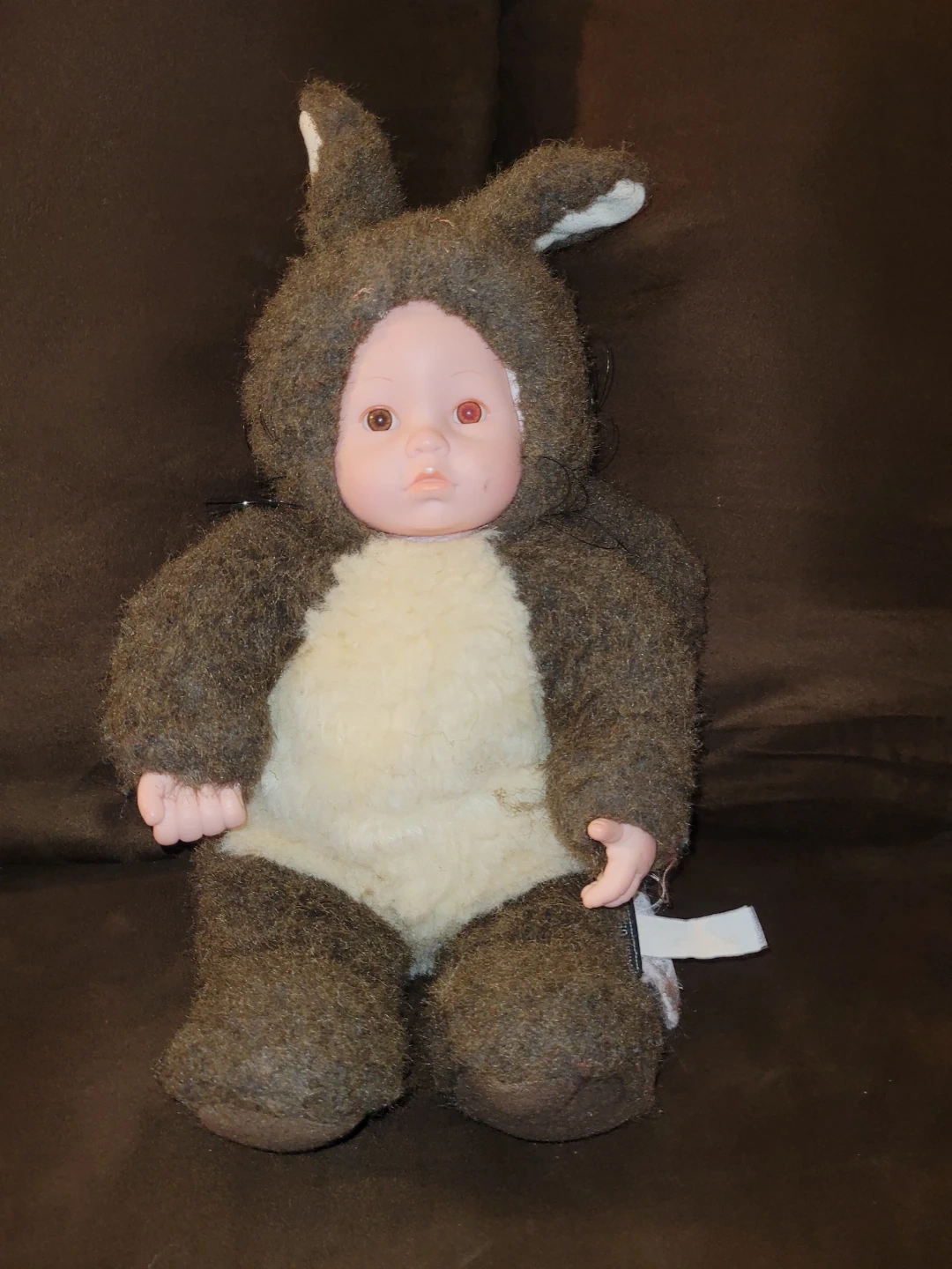 This adorable squirrel doll is looking for a new home! It's in good condition, though clearly used. This unique doll features a squirrel costume. Its quirky charm is sure to bring a smile to anyone's face.