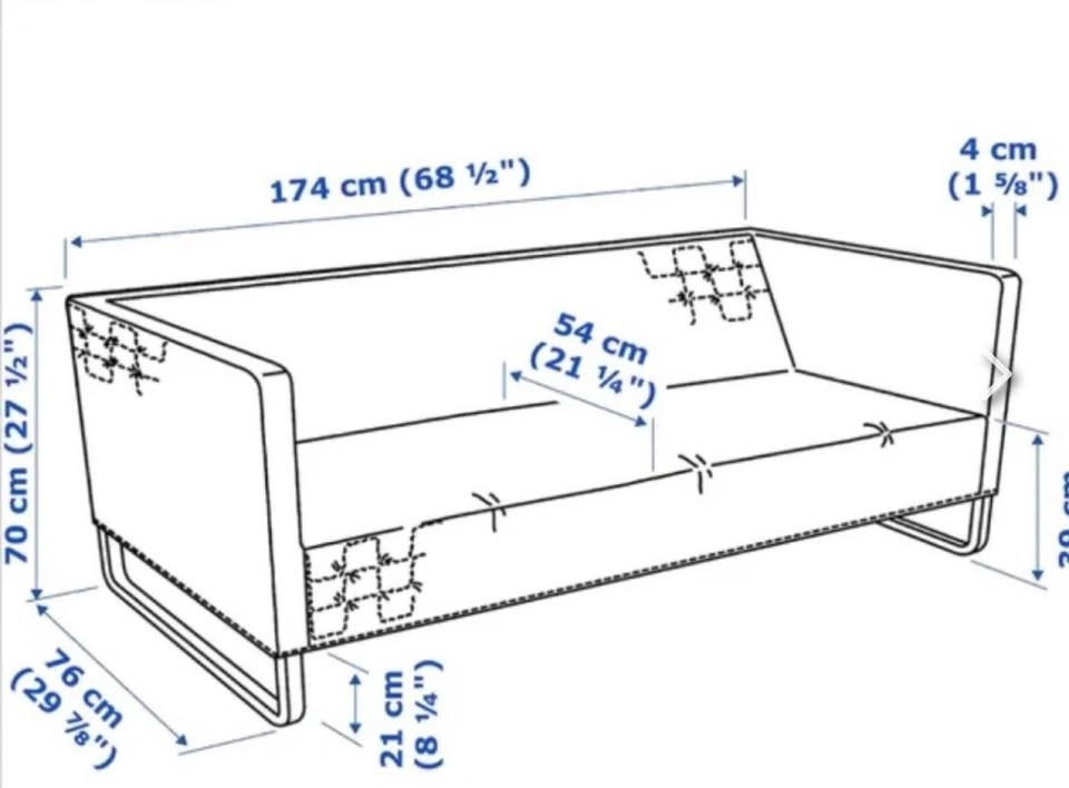 Please note: KNOPPARP sofas are designed to be firm — they don’t come with soft cushions. What you see is the original, solid structure. The strong metal frame ensures the seat never sags and provides excellent support.