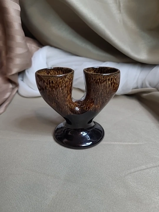 Vintage Glazed Pottery Double Egg Cup Holder, Excellent Condition please see all pictures