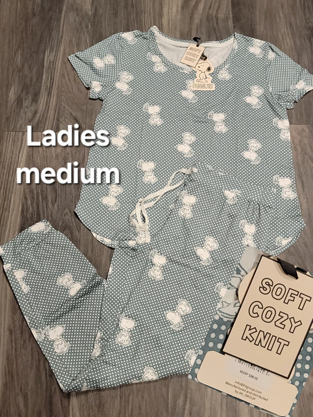 Here's a super cute Peanuts pajama set! It's a soft, cozy knit material and comes in a ladies' size medium. The original price was $88